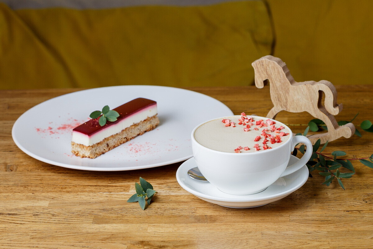 Фисташковый мусс, взбитый с эспрессо и молоком. Клубничные хлопья в первом глотке.