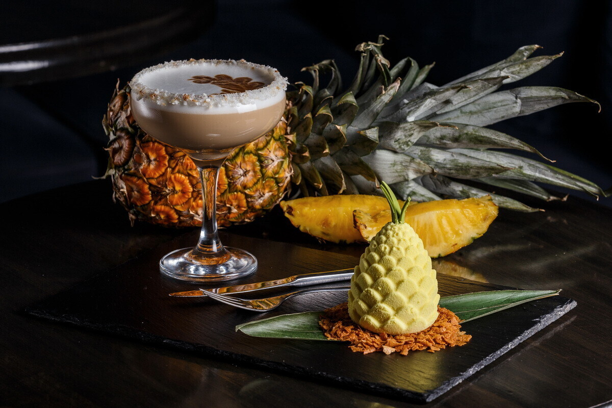 Нежный муссовый десерт из белого шоколада и кокоса, дополненный кислинкой ананасового пюре. На вафельной крошке.