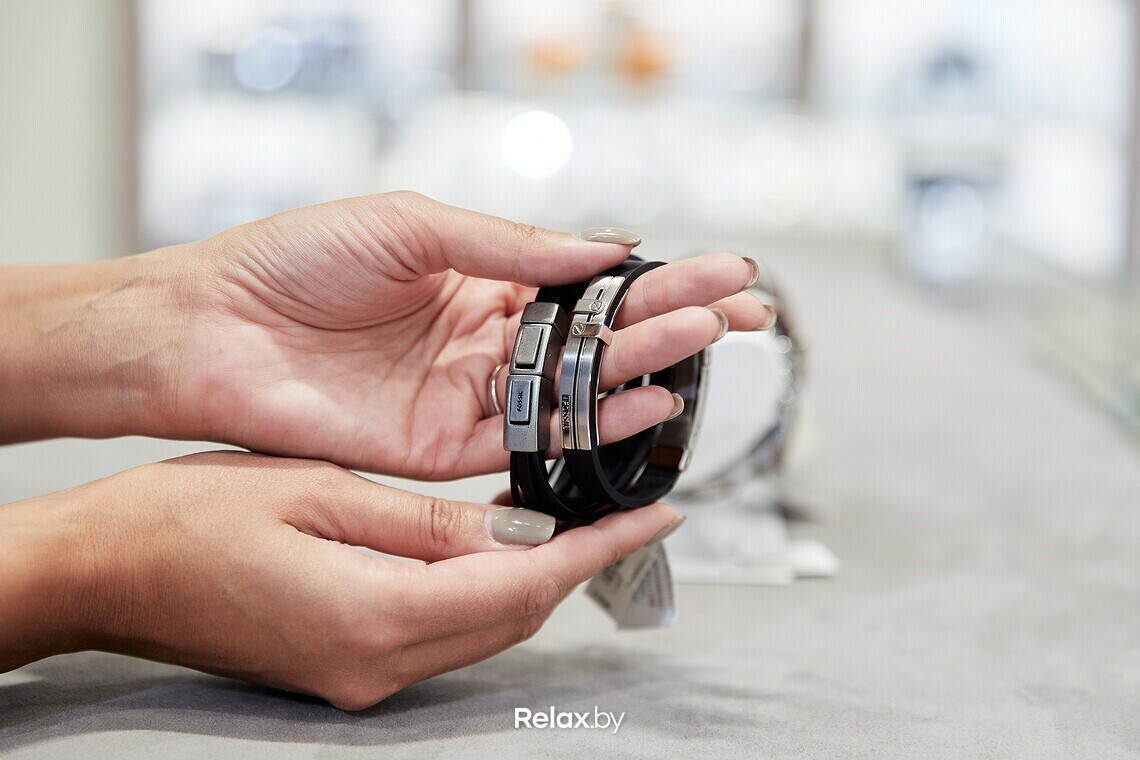Здесь много вариантов кожаных браслетов, но я бы остановилась вот на этом (показывает на Fossil). Уверена: Артем будет от него в восторге. Кстати, такие плетеные браслеты стильно смотрятся и на женской руке.