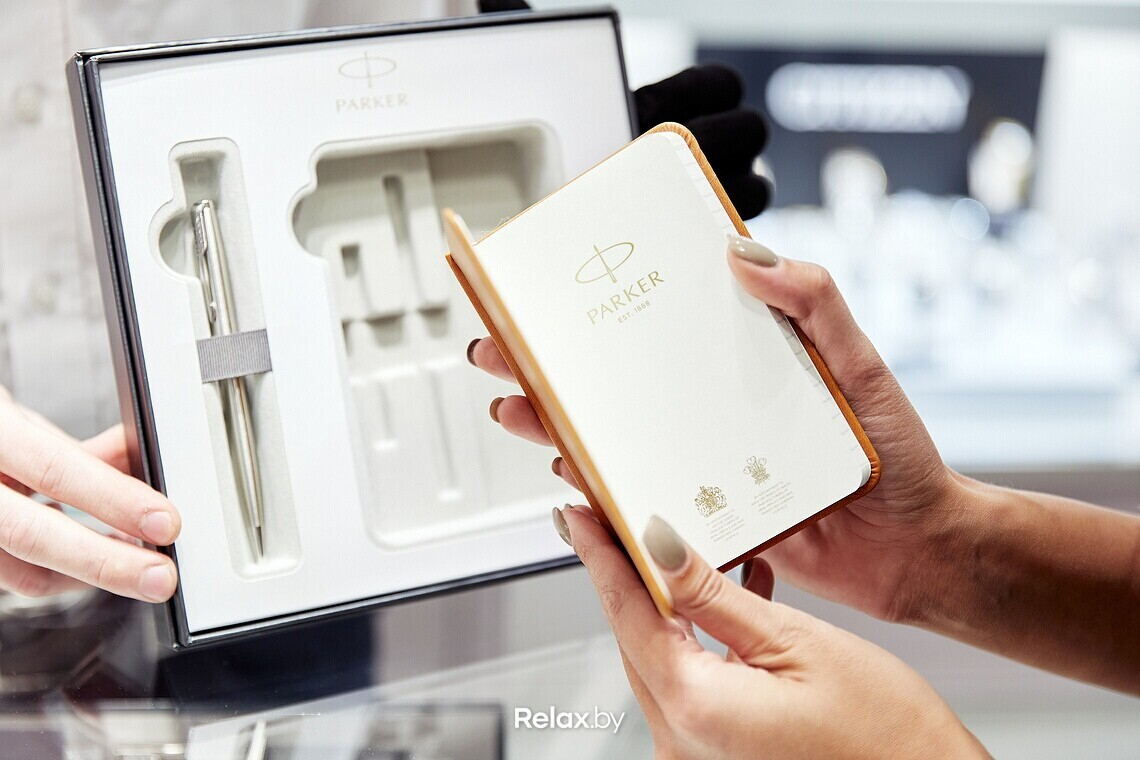 — Из подарочных наборов для мужчин в магазине есть еще ручки с блокнотами от Parker. Мы с Артемом редко используем такие аксессуары, поскольку все заметки храним в телефоне. Но если рассматривать набор в качестве имиджевого подарка — это достойный вариант, особенно для деловых людей.