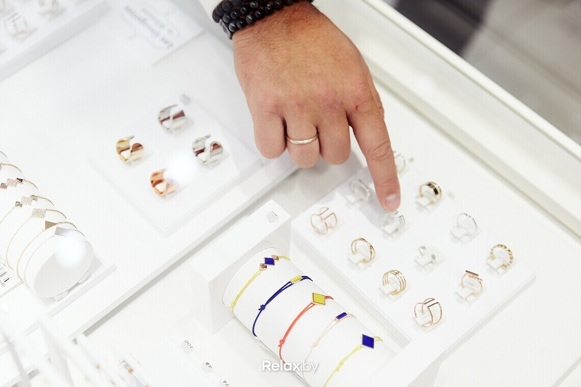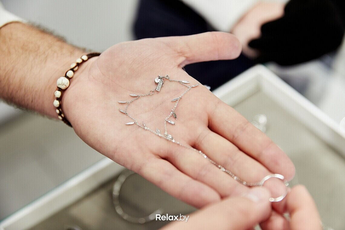 — Сегодня я хочу подобрать для нее комплект, который будет состоять из браслета, колец и цепочки. У Таис тонкие длинные пальцы, поэтому украшения в минималистичном стиле будут очень эффектно смотреться на ее загорелых руках.