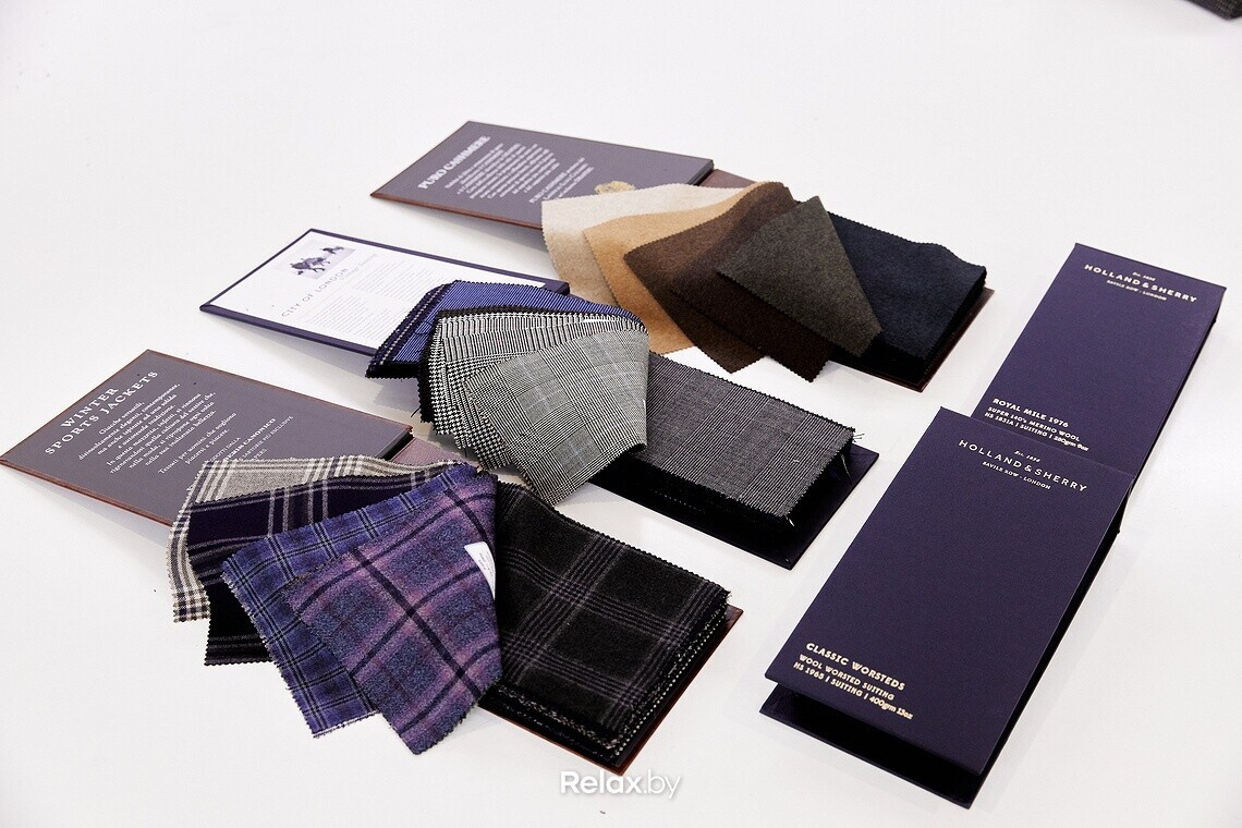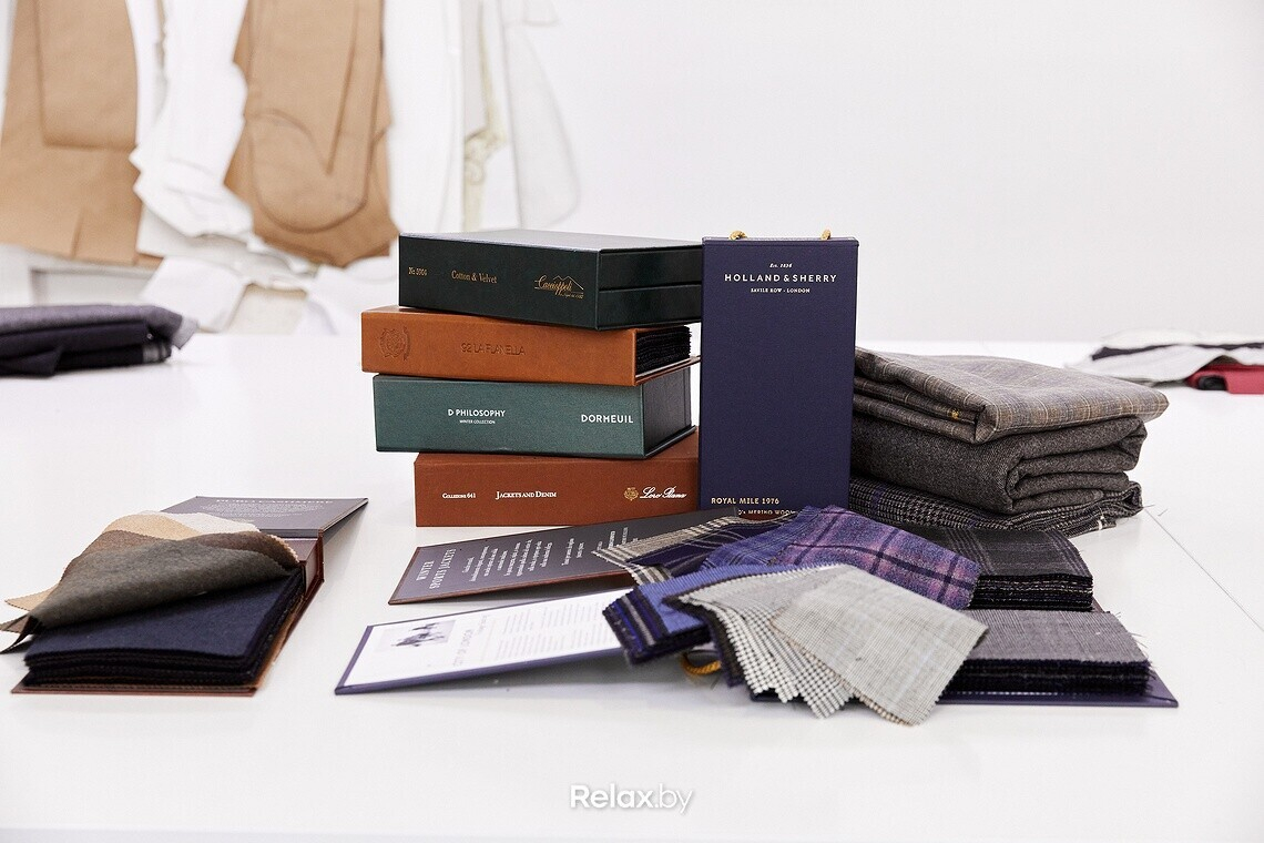 В студии есть более 100 каталогов тканей от мировых производителей: шерсть, кашемир, лен, шелк — на любой вкус и цвет. Кстати, с выбора ткани и начинается масштабный процесс работы над костюмом.