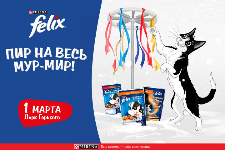 1 марта в самом центре города, в детском парке имени М. Горького, пройдут необычные гуляния с увлекательными тематическими развлечениями под руководством кота Феликса. Гости смогут принять участие в кототвистере, пройти аудиоквест и сыграть в «Мурзыку», чтобы узнать, кто среди гостей мурчит громче всех.
