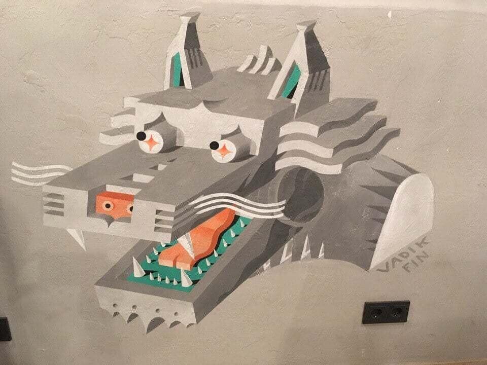 — В «Карму» я попал, когда увидел в сети объявление, что в баре можно порисовать. Я как раз решил протестить свой новый объемный стиль и подготовил эскиз заранее. Рисунок нанес буквально за несколько вечеров в приятной компании и атмосфере бара. Кстати, сама работа стала даже предметом некоторых споров насчет того, кто на ней изображен — кот или собака.