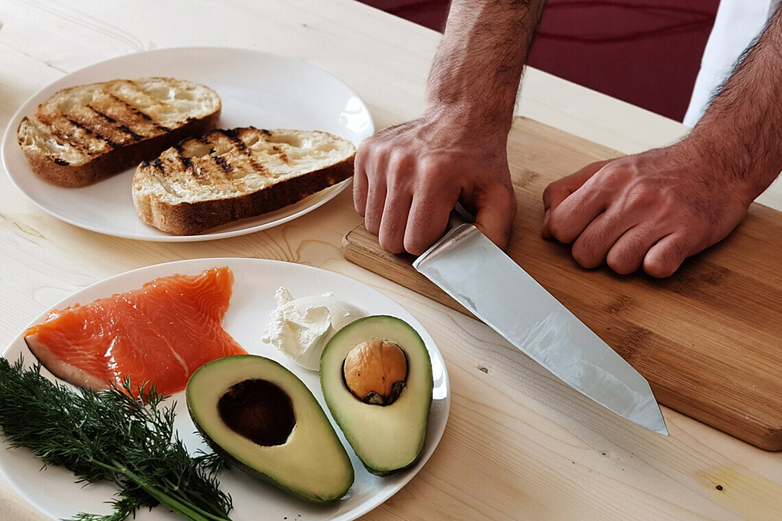 При взаимодействии с кислородом авокадо быстро темнеет, поэтому рекомендуем нарезать его в последнюю очередь. На вкус это не повлияет, а вот аппетитный вид для удачного кадра в Instagram потеряться может. Вернуть прежний вид на некоторое время можно: сбрызните ломтики небольшим количеством лимонного сока. Покупать авокадо рекомендуем на крупных рынках: там, в отличие от торговых сетей, представлены лучшие по качеству перуанские сорта.