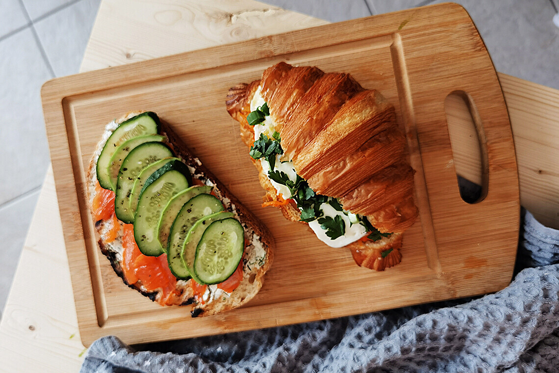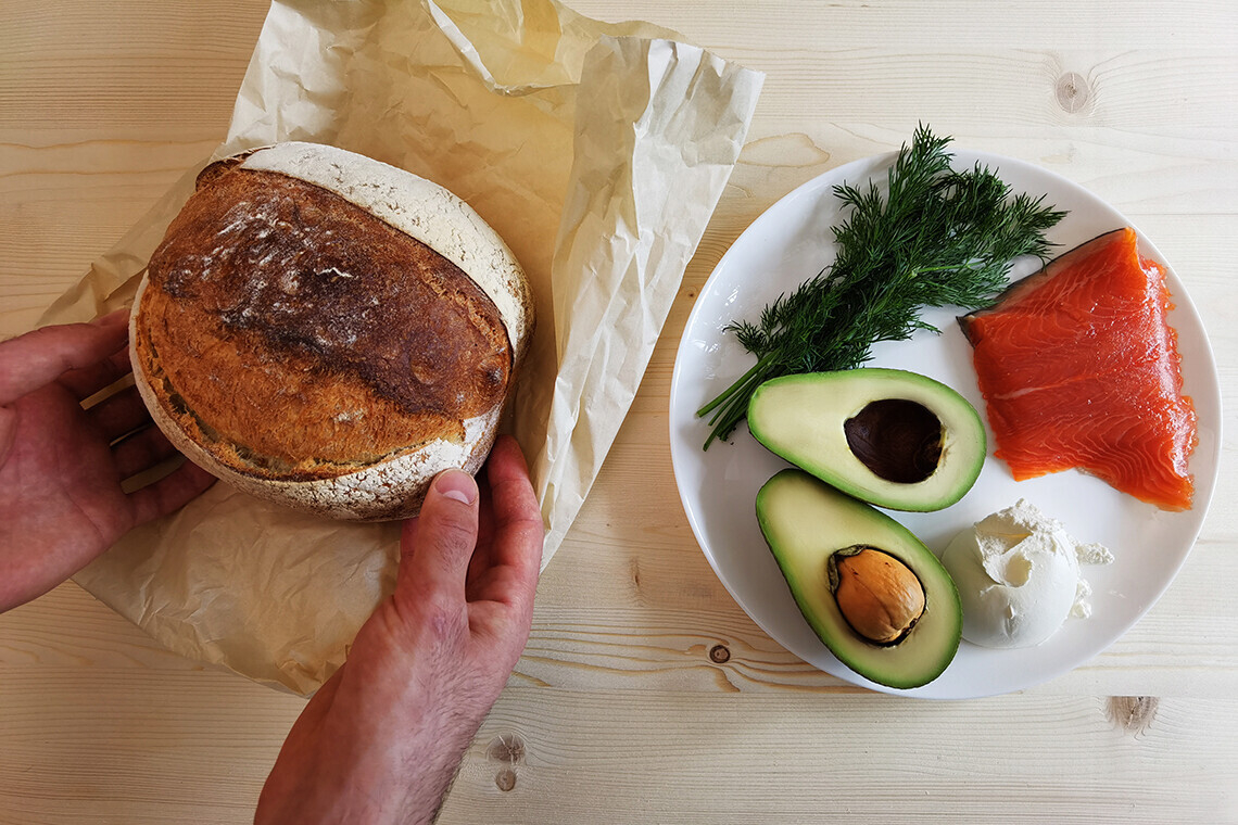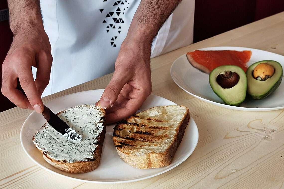 Ставим смартфон на зарядку и начинаем с тоста на ремесленном хлебе.