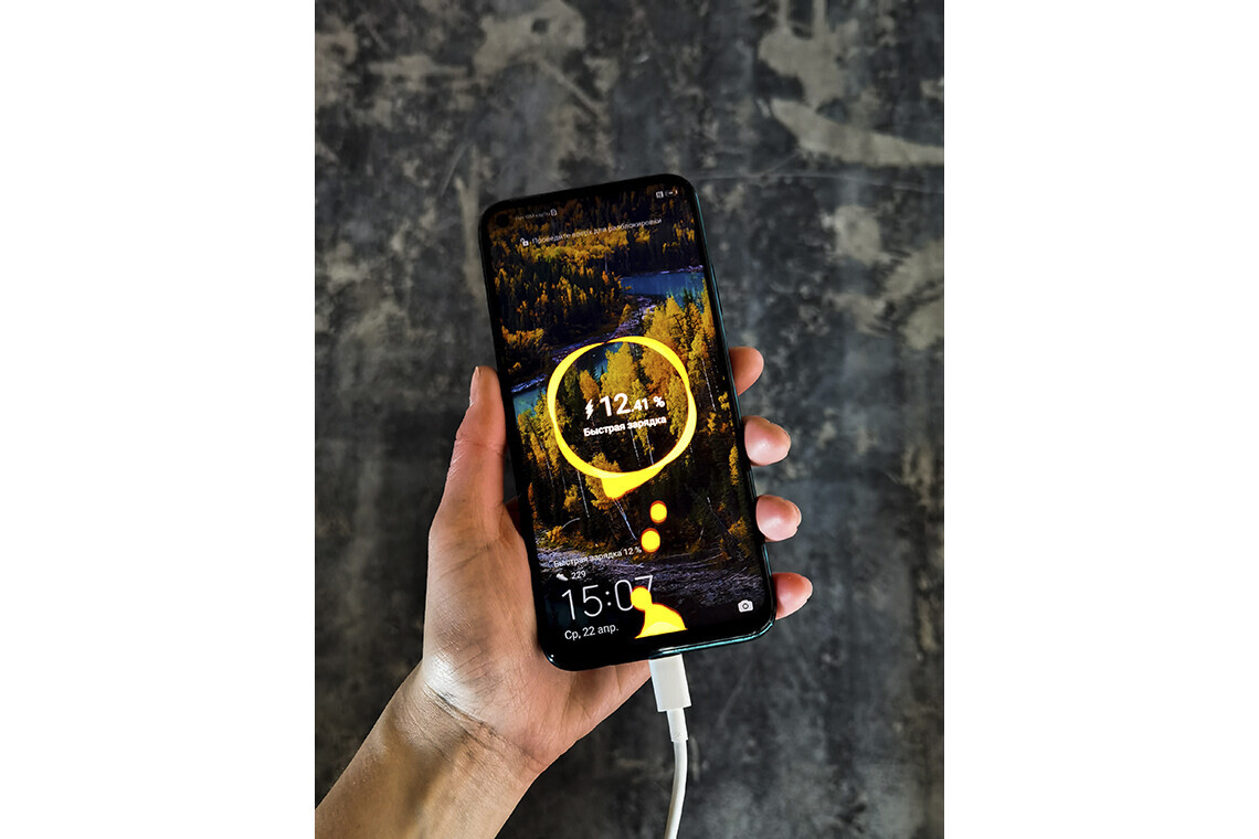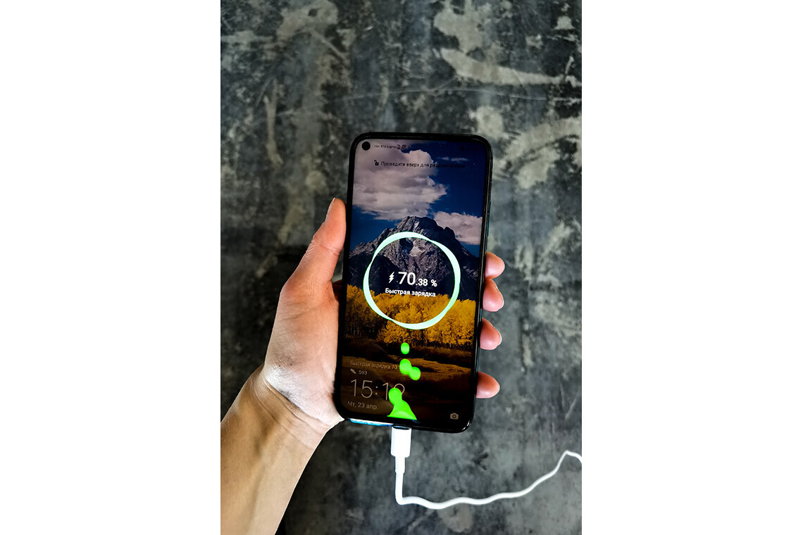 Проверим наш смартфон. HUAWEI P40 lite оснащен мощным аккумулятором 4200 мА·ч с быстрой зарядкой HUAWEI SuperCharge 40 Вт. Прошло 15 минут — сейчас на дисплее гаджета 35% заряда.