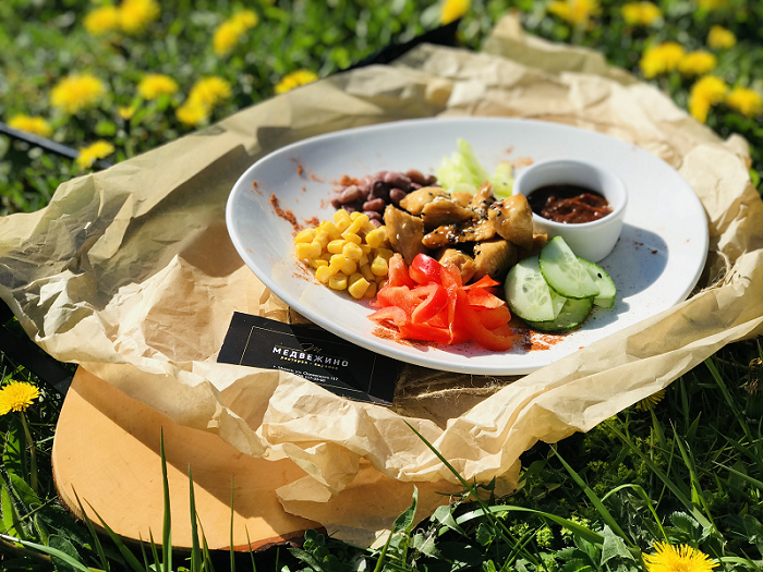 Готовить поке дома не очень сложно, но не выгодно: нужно покупать довольно много недешевых ингредиентов. Поэтому в «Медвежино» вам предлагают взять поке с цыпленком терияки и авторским соусом в виде полуфабрика. В набор входит филе куриное, которое нужно слегка обжарить, добавив готовый соус терияки из набора. Нарезанные свежие овощи по вашему предпочтению и вкусу выкладываем на тарелку, заправляем блюдо соусом «Аджика» и посыпаем миксом белого и черного кунжута. Цена — 10 рублей.