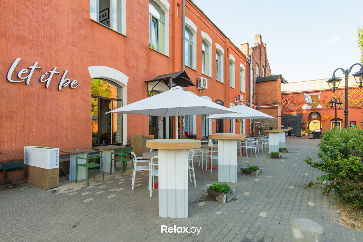 Только свежий воздух и любимая Октябрьская. Лаконичная терраса Let it be максимально открыта, но при этом спрятана от солнца зонтиками. Собственная пекарня, завтраки весь день, винная карта от Артема Хамицевича и сильная кофейная карта. Пожалуй, лучший план на субботу.