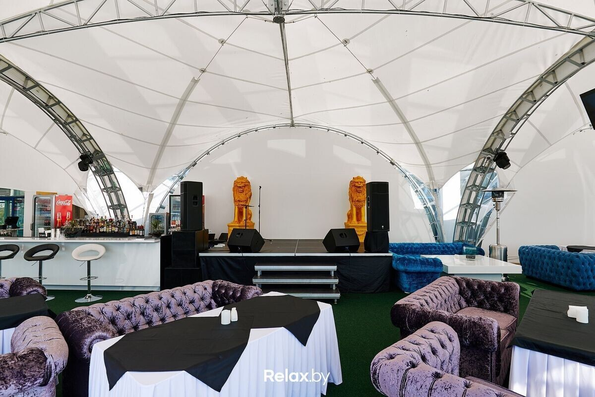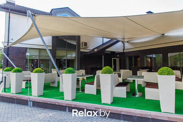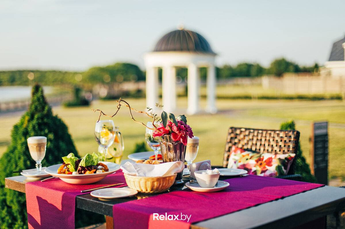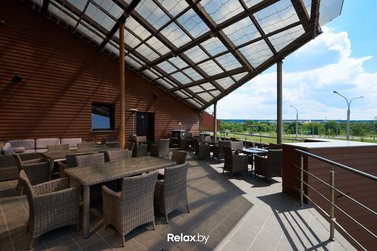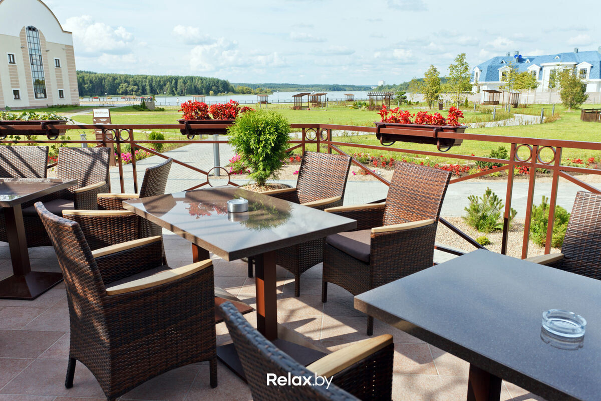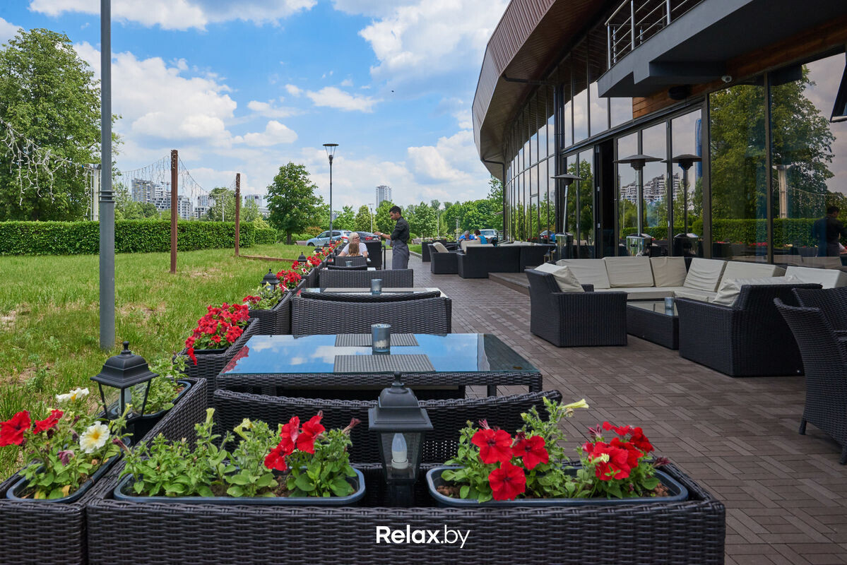 С летней террасы загородного клуба в 7 километрах от Минска открывается вид на берег Минского моря. Площадь террасы позволяет расставить столики на безопасном расстоянии. Семьи оценят наличие детской комнаты. При желании можно остаться с ночевкой: на территории комплекса есть коттеджи с сауной и джакузи, зоной барбекю и шезлонгами. Предварительная бронь обязательна.
