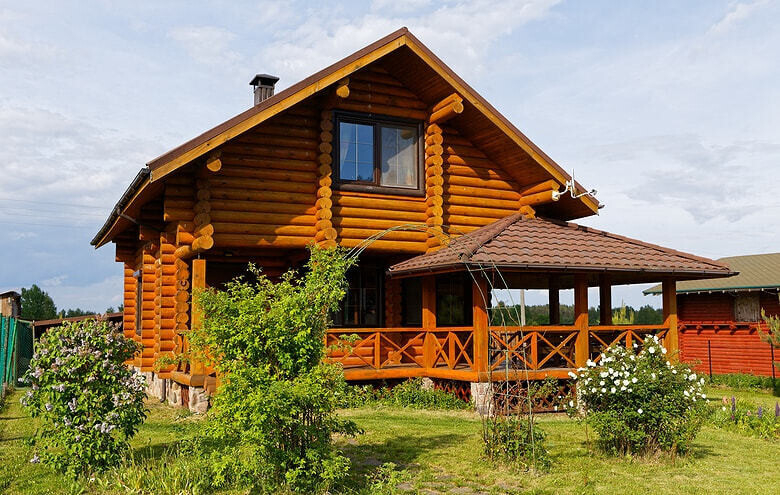 Бревенчатый двухэтажный дом с террасой расположился в национальном парке «Нарочанский» на берегу озера Болдук, где можно купаться и ловить рыбу.