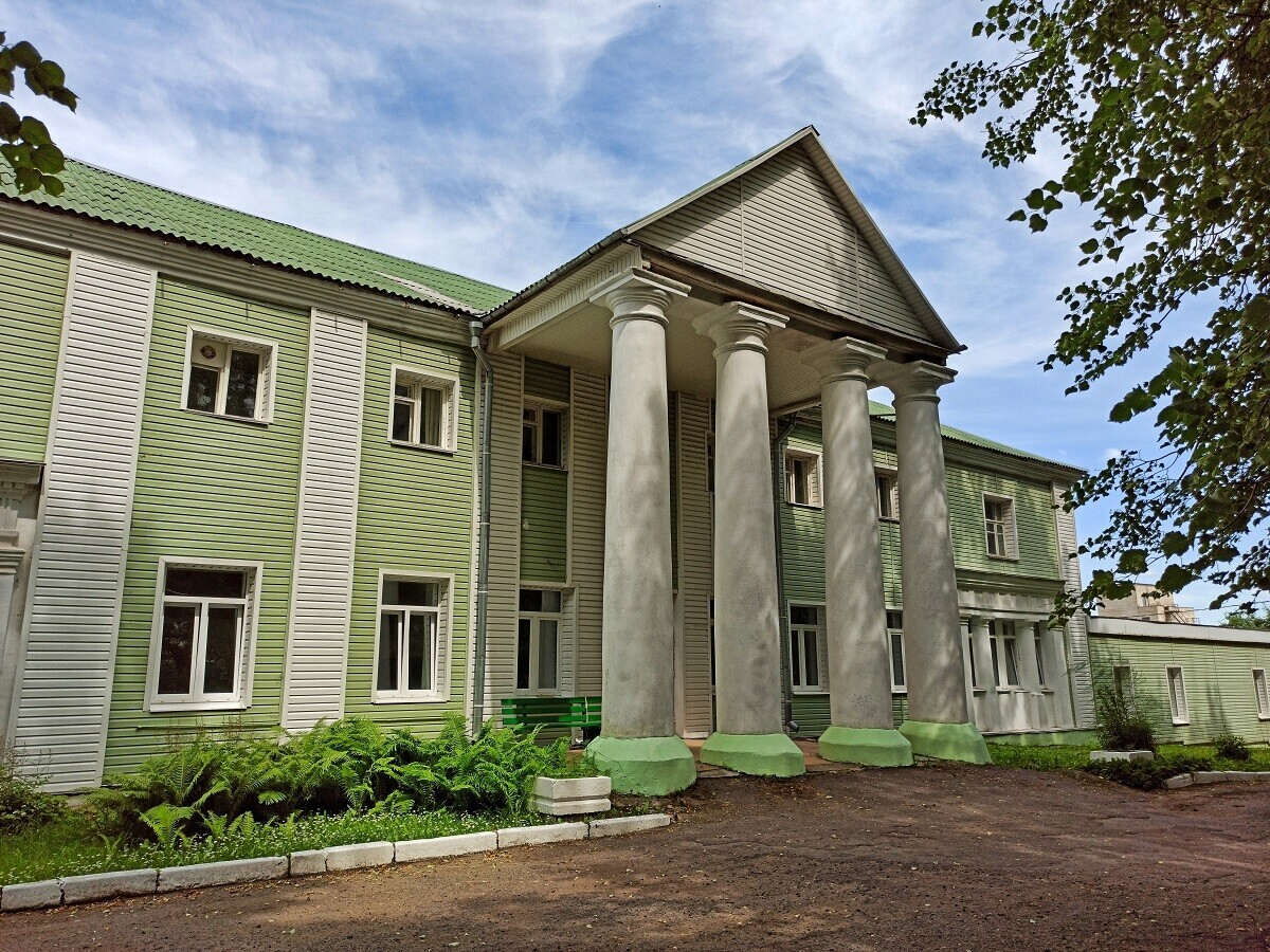 Сейчас стены усадьбы «заботливо» обшиты... нежно-зеленым сайдингом! Лишь массивный портик с четырьмя дорическими колоннами напоминает о славном прошлом родового гнезда.
