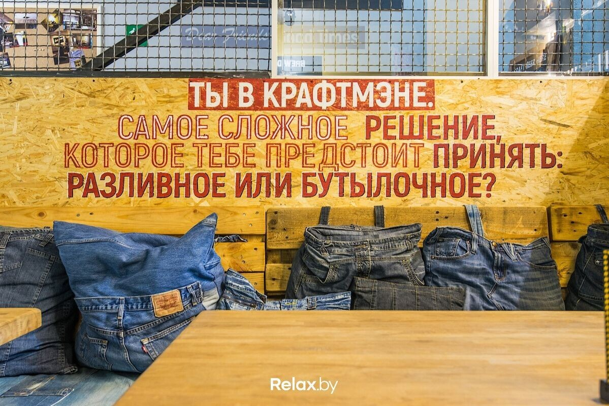 Как гласит надпись на стене бара: «Самое сложное решение, которое тебе предстоить принять: бутылочное или разливное?». И здесь твой голос точно зачтут правильно. Акцент в CRAFTMAN на пиве из небольших белорусских пивоварен, но можно попробовать избранный крафт со всей планеты: разные страны, пивоварни, стили. В общей сложности более 90 сортов бутылочного и до 20 видов разливного.
