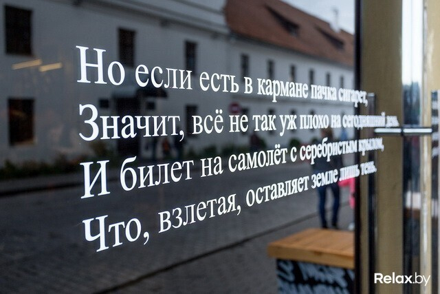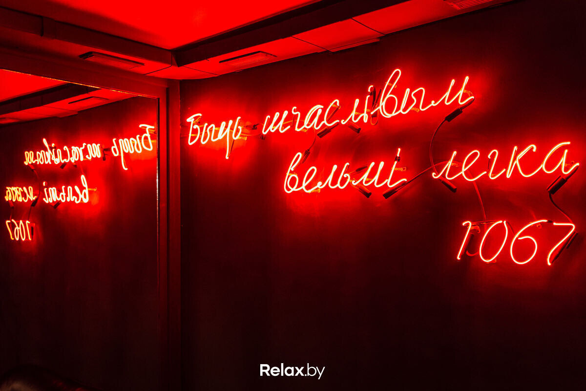Здесь также разрабатывают авторские напитки, исходя из локальных продуктов. Не удивляйтесь, если встретите в составе чеснок, свеклу, ревень или тыкву. Интерьер в стиле конструктивизма кому-то напомнит об ошибках прошлого и заставит задуматься о будущем. А когда по правую сторону от барной стойки увидите картину белорусского художника с изображением рук из «Твин Пикс», вспомните эту цитату из культового сериала: «Я отклоняю абсолютно месть, агрессию и возмездие. Основа такого метода — любовь».