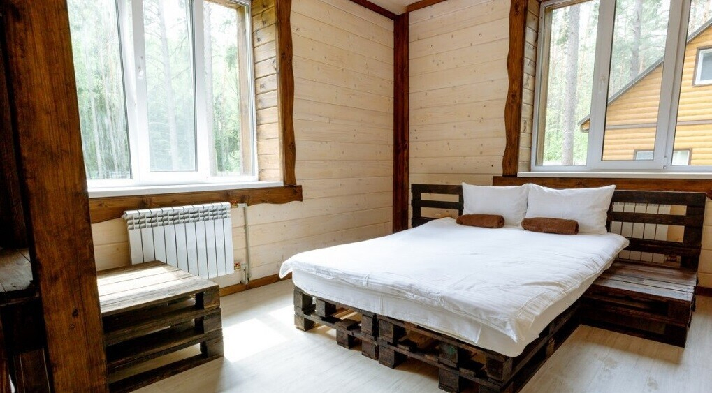 Гостям предлагается размещение в четырех домах: на 20,12 и два по 9 мест. В выходные аренда обойдется в 50 рублей/сутки с человека, в будни — 30 рублей/сутки. Если бронируете домик больше, чем на два дня, хозяева предоставят индивидуальную скидку.