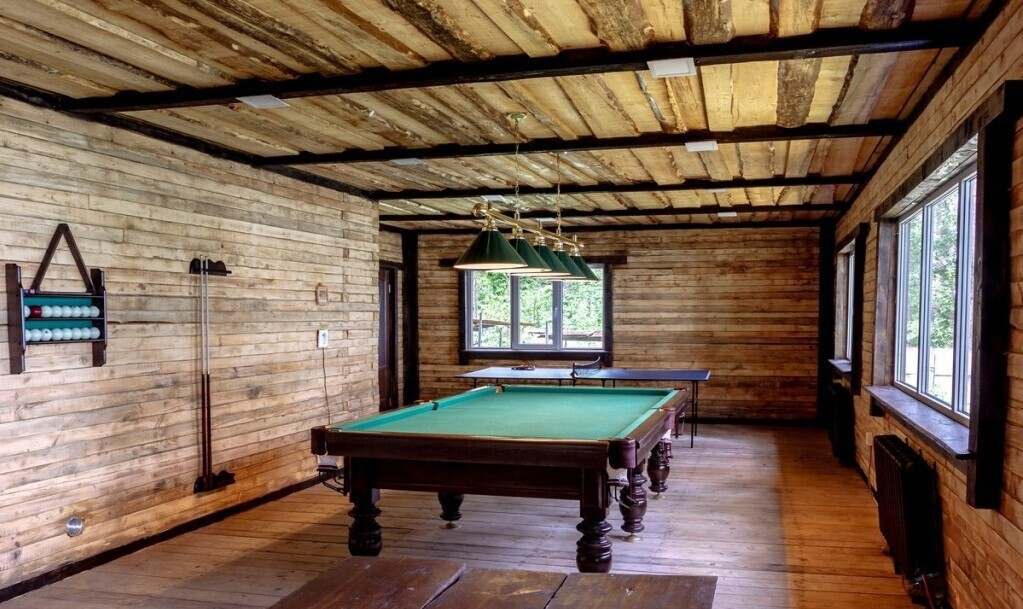 Тут есть баня на дровах (50 рублей в час) и бассейн с гидромассажем. Любители спокойного отдыха могут провести время за игрой в бильярд.