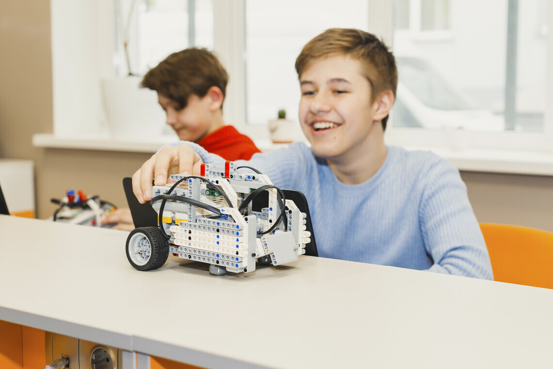- LEGO-конструктор (5-6 класс) — базовый курс по робототехнике с конструктором LEGO MINDSTORMS. Увлекательное изучение физики, технологии, информатики и математики. Ребенок конструирует и программирует роботов, готовит их к соревнованиям.