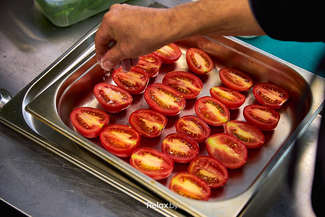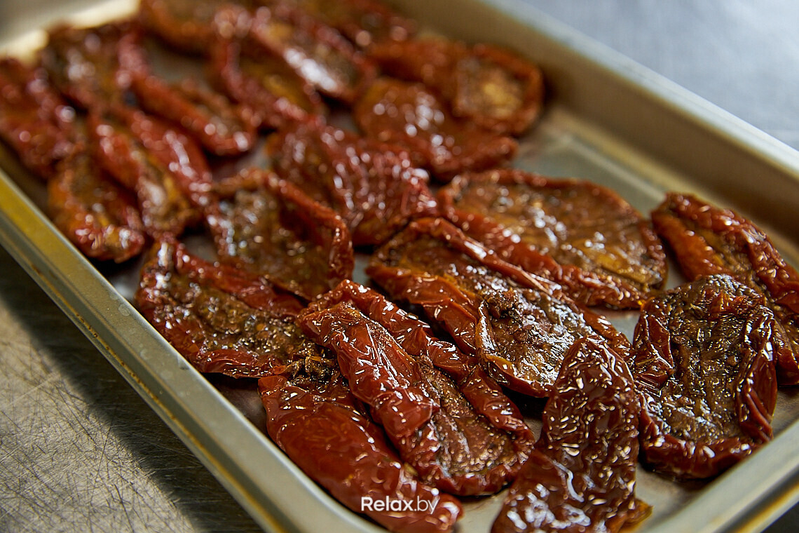 Клаудио отмечает, что на его родине вялят чаще всего томаты сорта «Сан Марцано». В Беларуси их также продают, но точно не на каждом углу: придется поискать на рынках. В качестве местной альтернативы шеф-повар предлагает использовать сорт «Сливки», которые имеют продолговатую форму, нужную упругость и небольшой размер.