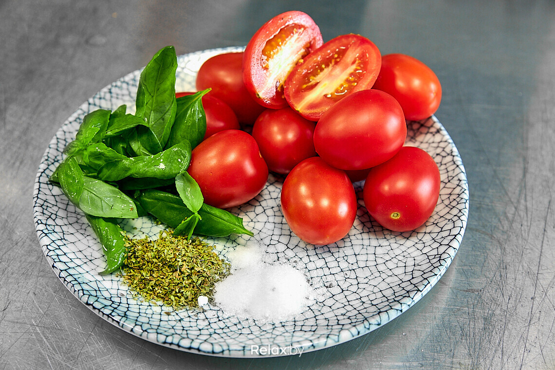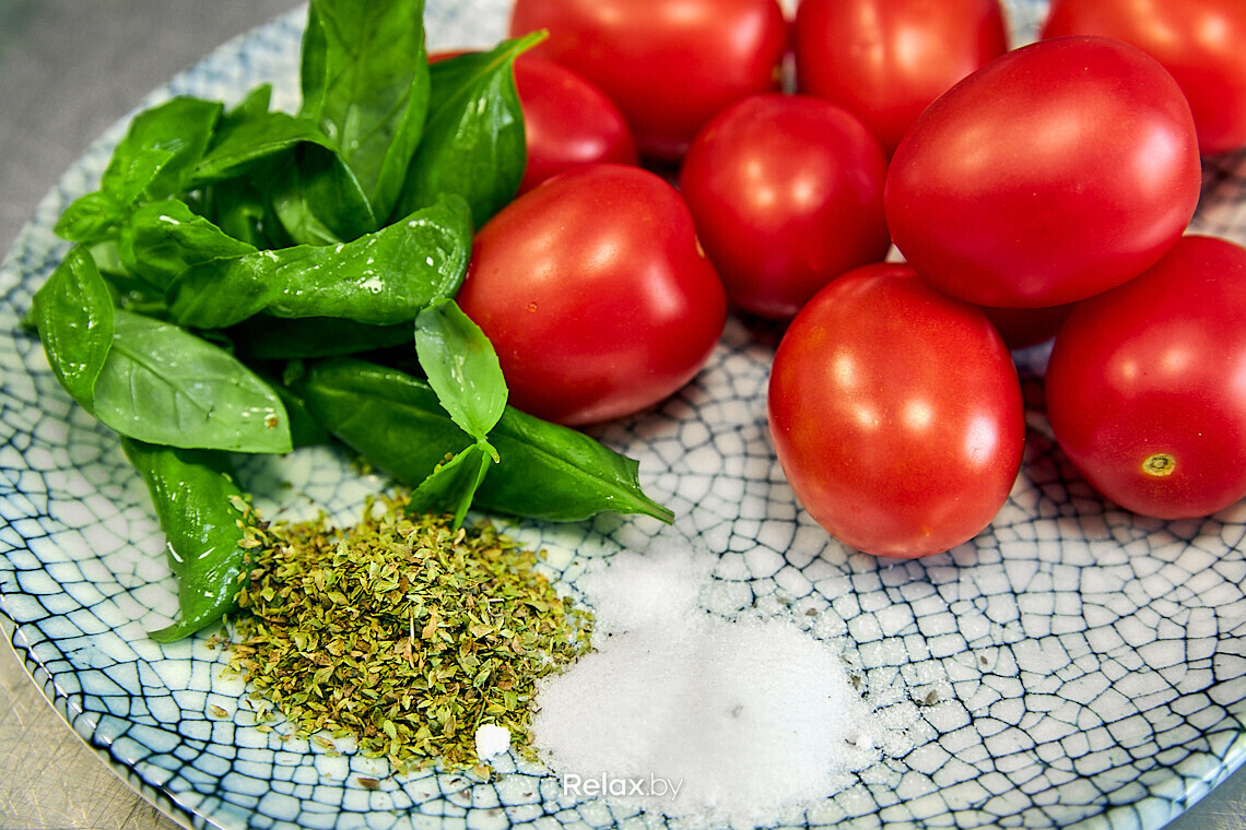 - свежий базилик (за неимением свежего можно использовать молотый, но томаты немного потеряют в ароматике);