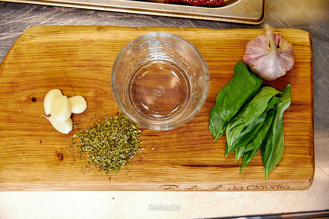 - Далее в ход идут соль, сахар и специи. Для начала разберемся с последними: шеф-повар подчеркивает, что в приготовлении нет универсальной, выверенной до граммов рецептуры. Используйте специи на ваш вкус, добавляя чего-то больше, а чего-то меньше. Мы используем предварительно измельченный свежий базилик и орегано. Также можно использовать тимьян, розмарин, прованские травы…. В общем, все, что вы любите.