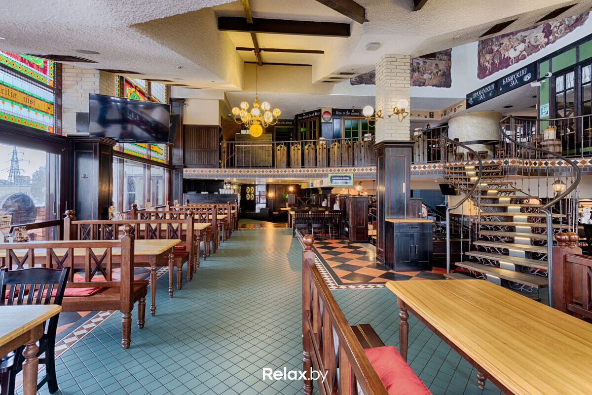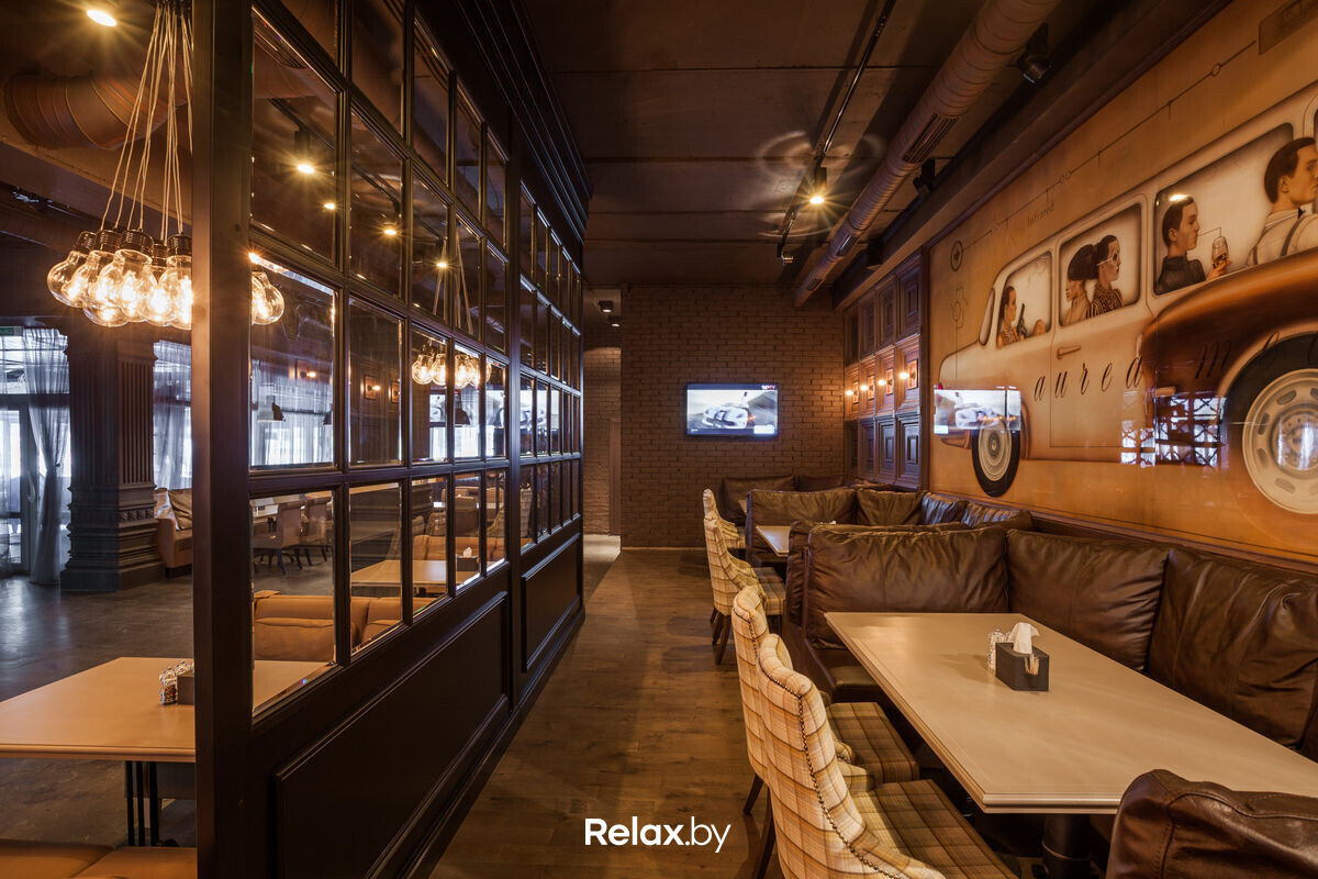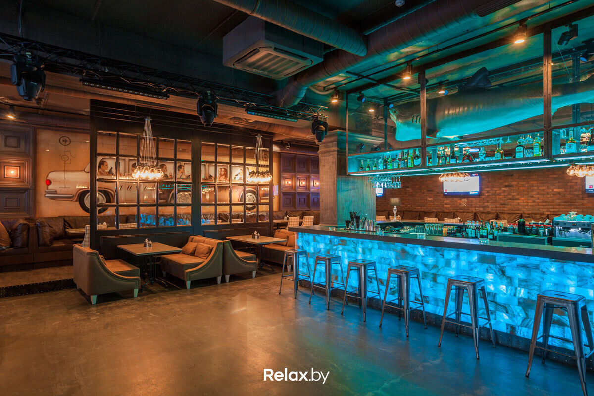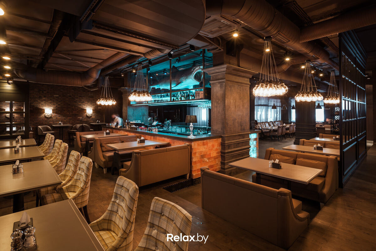 Локация, готовая вместить до 600 гостей. Интерьер гастропаба оформлен в стиле лофт: фактурные оболочки из металла здесь сочетаются с кирпичом, деревом, кожаной мебелью и приглушенным светом. В меню упор делают на европейскую кухню с авторским акцентом. В банкетное меню можно внести сочную рульку, зажаренного цыпленка, медальоны и стейки.
