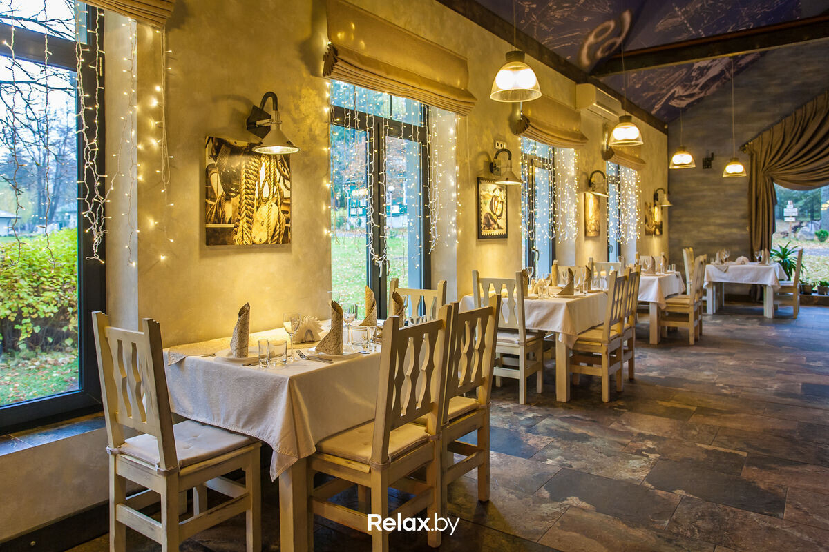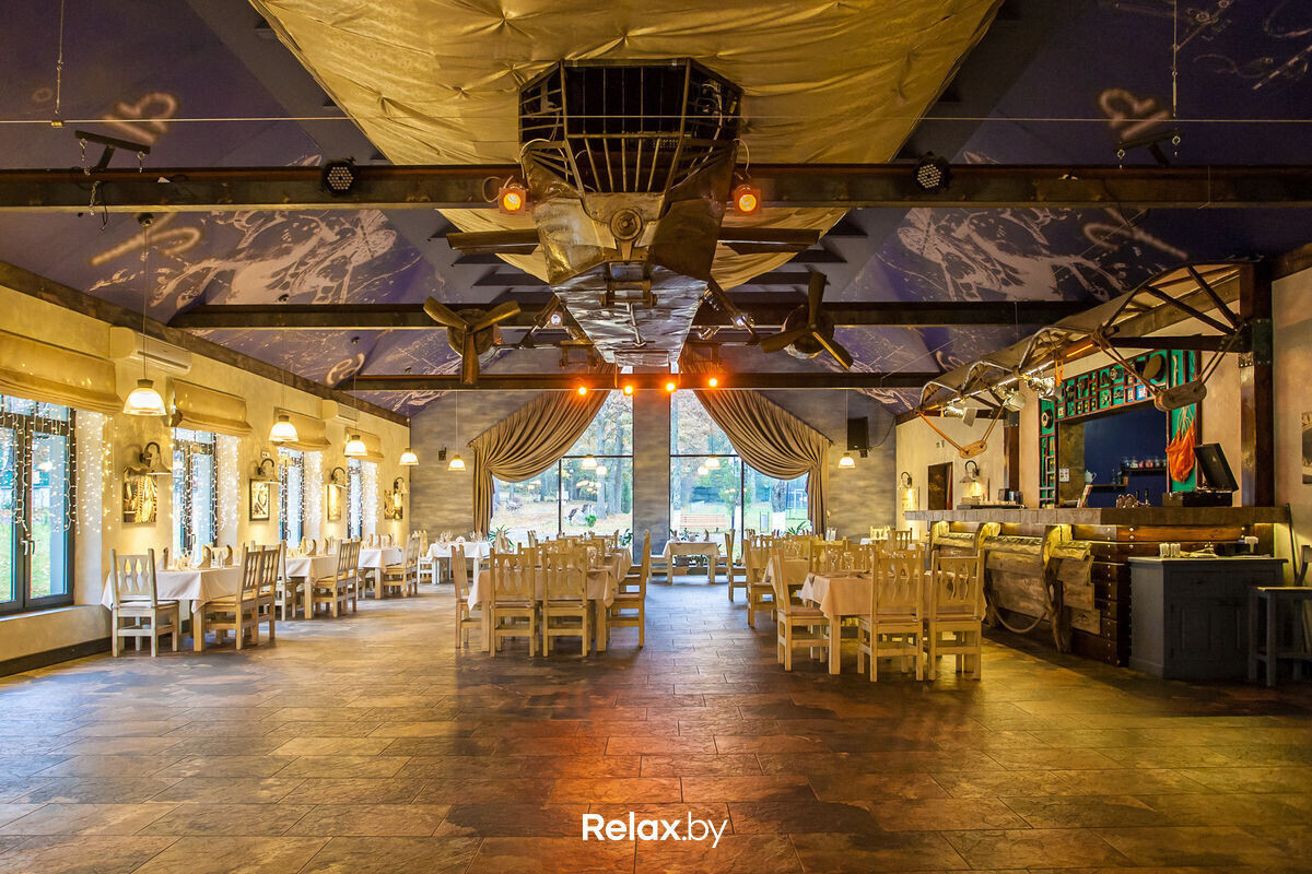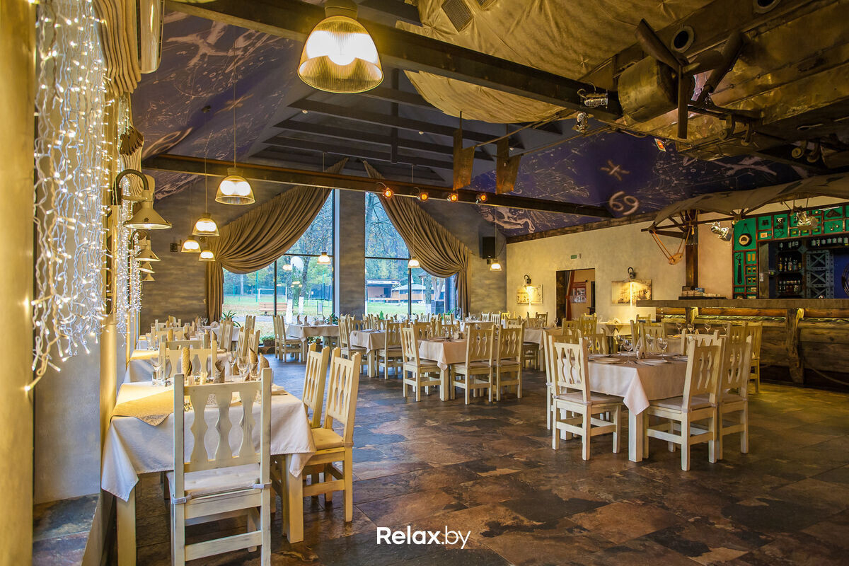 Загородный клуб всего в 15 минут езды от Минска вблизи водоема. Комплекс может похвастаться двухуровневым рестораном, в котором размещены два основных и три VIP-зала, рассчитанные общим количеством на 400 мест. Также есть контактный бар и танцпол. Для корпоратива важно, что пространство может быть организовано как с частичной, так и с полной звукоизоляцией.