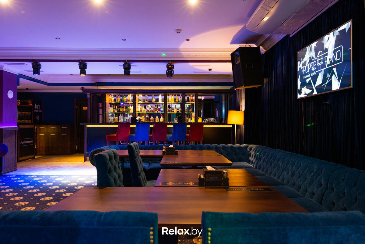 Пространство этого караоке-клуба многофункционально, корпоратив здесь запомнится тем коллективам, в которых любят петь. Зал оснащен профессиональной караоке-системой AST-250, которая обеспечивает равномерное и качественное звучание. Также отметим освещение премиум-класса, при котором основной зал можно украсить любым цветом и, соответственно, создать любую атмосферу.