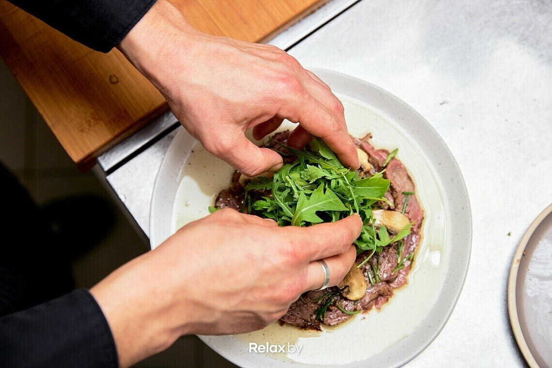 — Абсолютная итальянская классика: говядина готовится очень быстро, тонко нарезается и получается нежной. Для тальяты можно использовать любые грибы, от шампиньонов до вешенок. Но, безусловно, лесные грибы в приоритете.