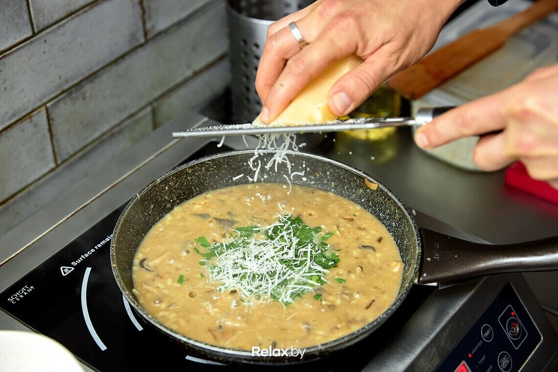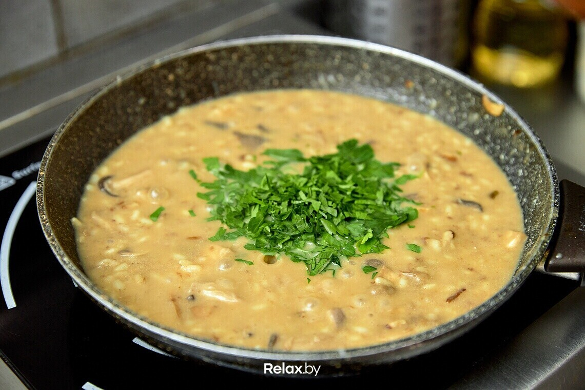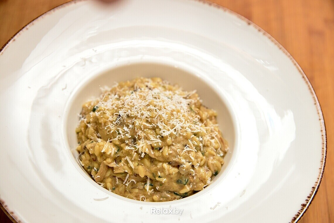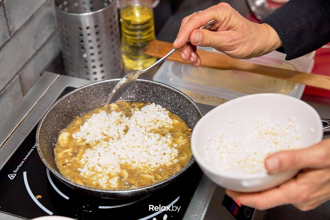 — Я влюблен в итальянскую кухню за ее простоту, — отмечает шеф-повар. — Однако при кажущейся на первый взгляд легкости приготовления очень важно строгое соблюдение технологии. Ведь само по себе ризотто готовится элементарно. Но если нарушить процесс, то получится полная чушь. В лучшем случае скромное блюдо под названием «рис с грибами».
