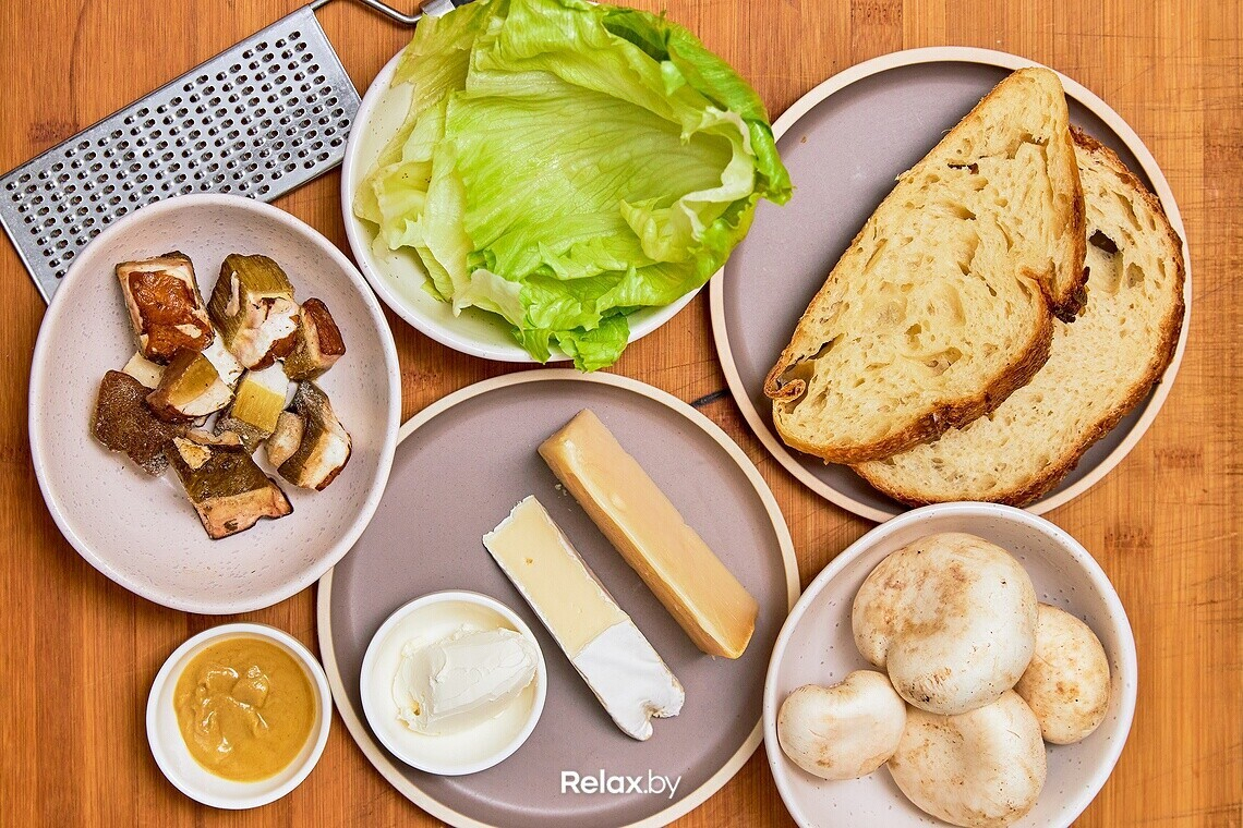 Брускетта с кремом из грибов, камамбером и