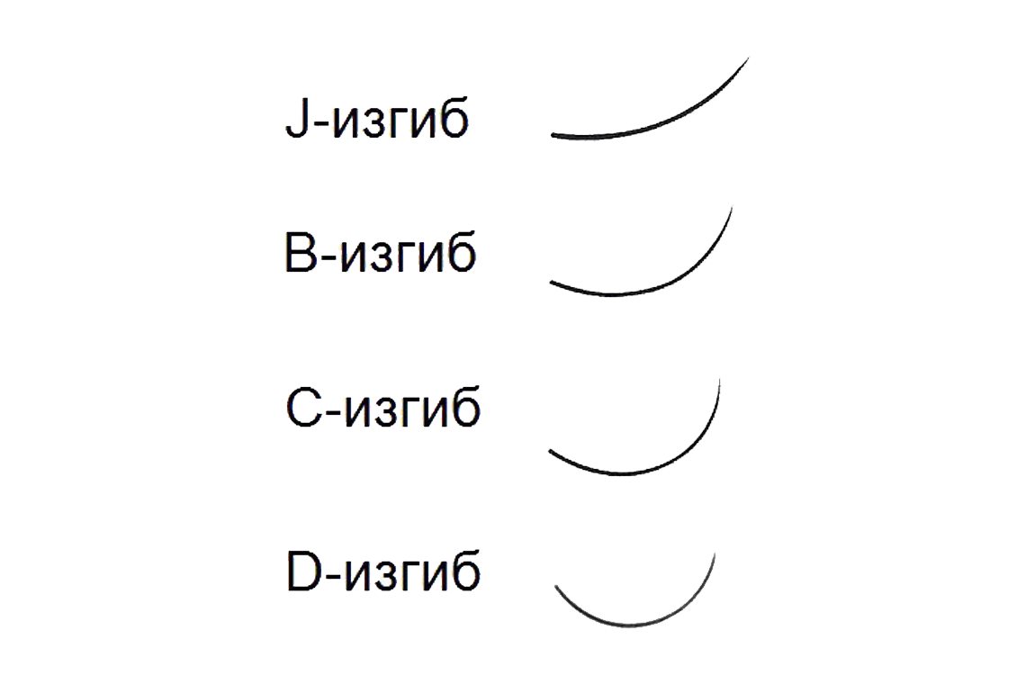 - Изгиб B. Как правило, он повторяет форму натуральной реснички и имеет небольшой завиток на конце. Изгиб практически не корректирует форму глаз и подходит тем, кто хочет выделить взгляд без утяжеления ресничного ряда.