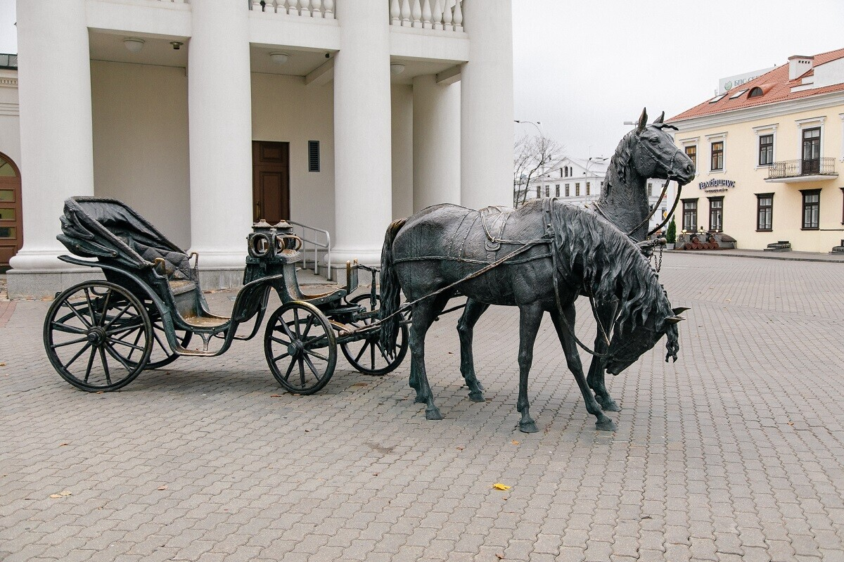На площади рядом с Ратушей вас ждет бронзовая скульптура кареты с лошадьми. Устраивайтесь поудобнее, загадывайте желание и признавайтесь друг другу в любви — эти фото с видами старого города будут согревать долгие годы.