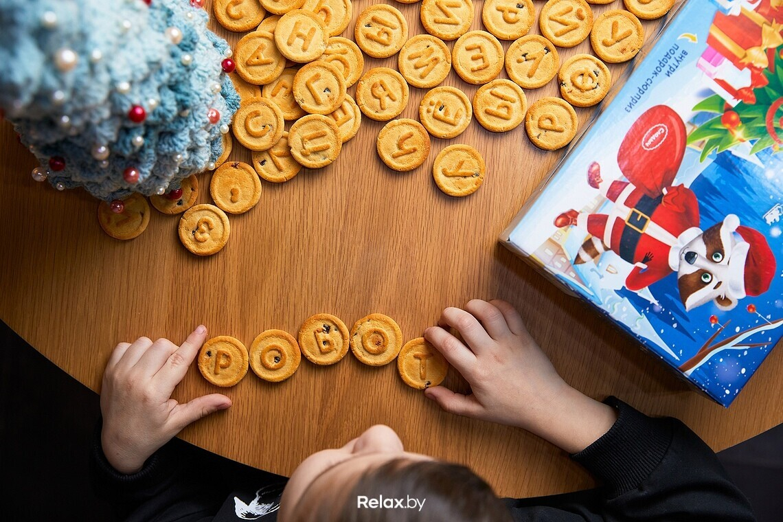 С помощью печенья «Знайка-зазнайка» Алфавит» Маша, Коля и Арина выложат по одному слову: то, что больше всего хотели бы получить в подарок от Деда Мороза на Новый год. Задача мам — попытаться угадать, о чем мечтают их дети.