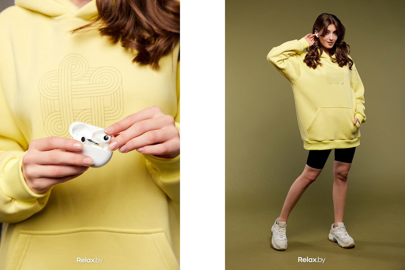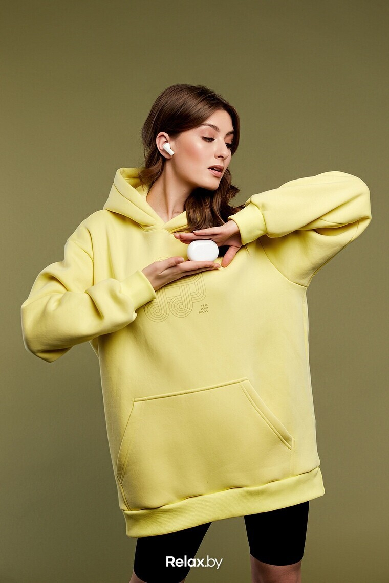 В коллекции представлены минималистичные худи из натуральных материалов в двух цветах — черном и лимонном.