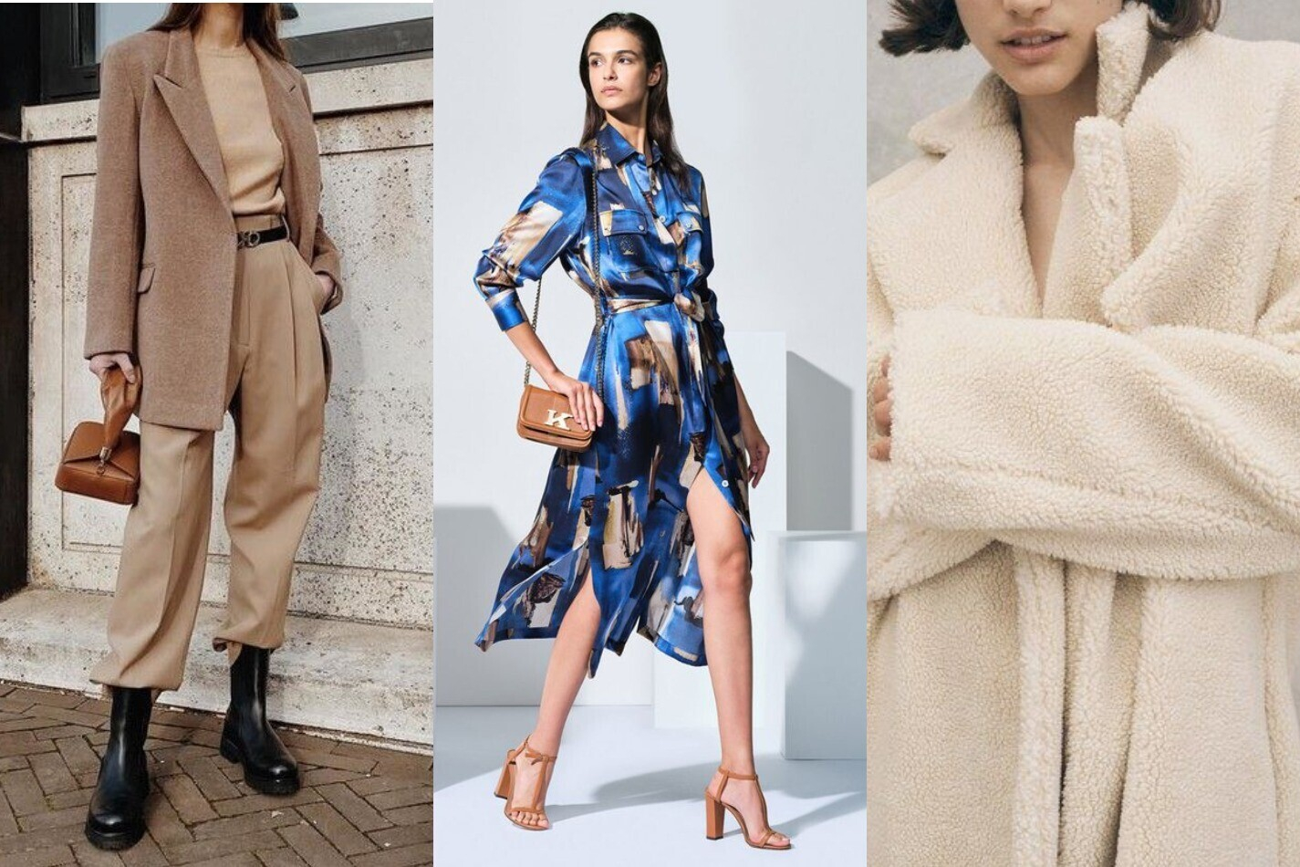 В новый сезон мы заберем экокожу, принты, струящиеся легкие ткани, вещи из искусственного меха, широкие брюки, кроссовки на толстой подошве, необычный и удобный каблук. А забыть нужно про узкие брюки, короткие пиджаки, вельветовые и плюшевые костюмы, кожаные леггинсы, ботфорты на шпильках (особенно под джинсы), заклепки на обуви и неон.