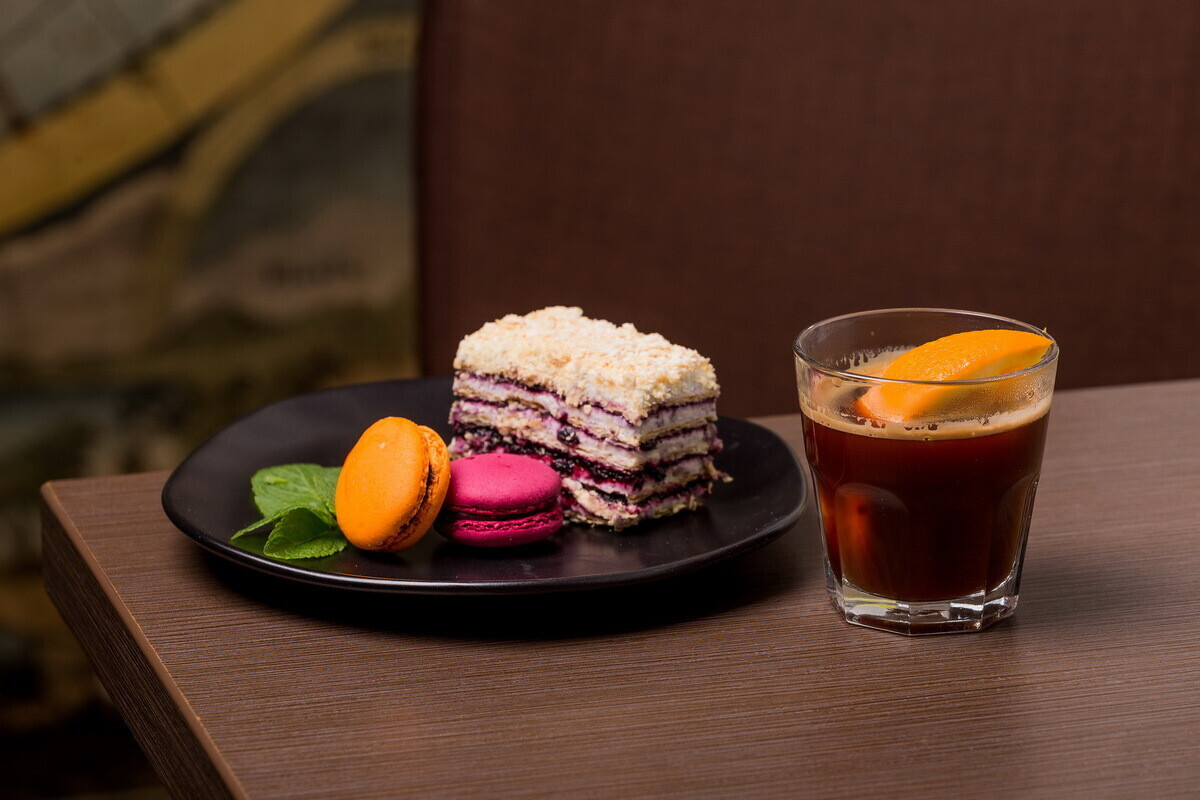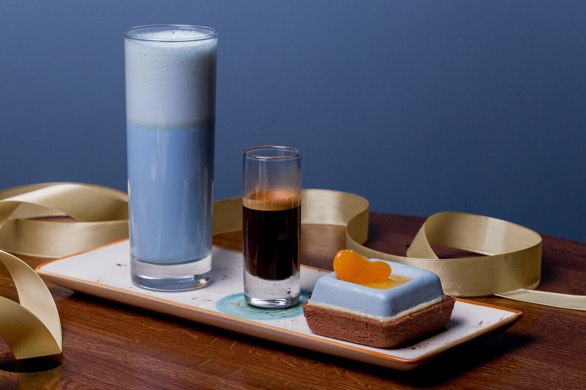 - «Тайский латте»: напиток из порошка тайской орхидеи с ароматным эспрессо, 250 мл (альтернативный вариант: американо Арабика Эфиопия + ром-эспрессо шот DOLCE).