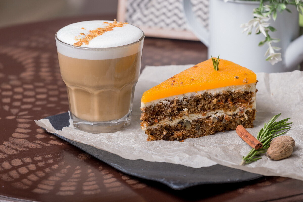 - Морковный латте с ванилью, 250 мл (интерпретация легендарного итальянского напитка «Латте» с морковным соком и ванильным сиропом).