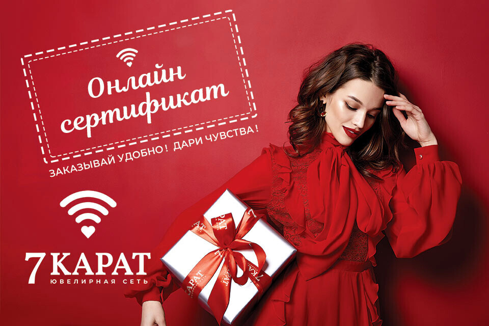 Если вы не сможете быть с любимым человеком в праздничный день или еще не определились с подарком, ювелирная сеть «7 Карат» предлагает воспользоваться электронным сертификатом. Просто перейдите на сайт, укажите сумму, оставьте контактную информацию того, кому предназначается сертификат. При желании подарок можно дополнить теплыми словами.