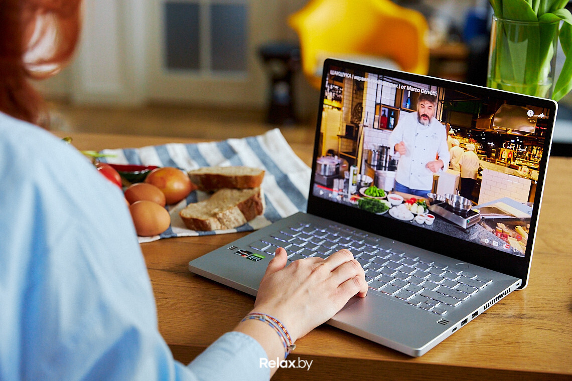 Затестить ROG Zephyrus M15 GU502 согласилась Регина — IT-специалистка, которая неравнодушна к компьютерным играм, средиземноморской кухне и Нью-Йорку. Открываем YouTube и выбираем один из рецептов в топе. Поехали!