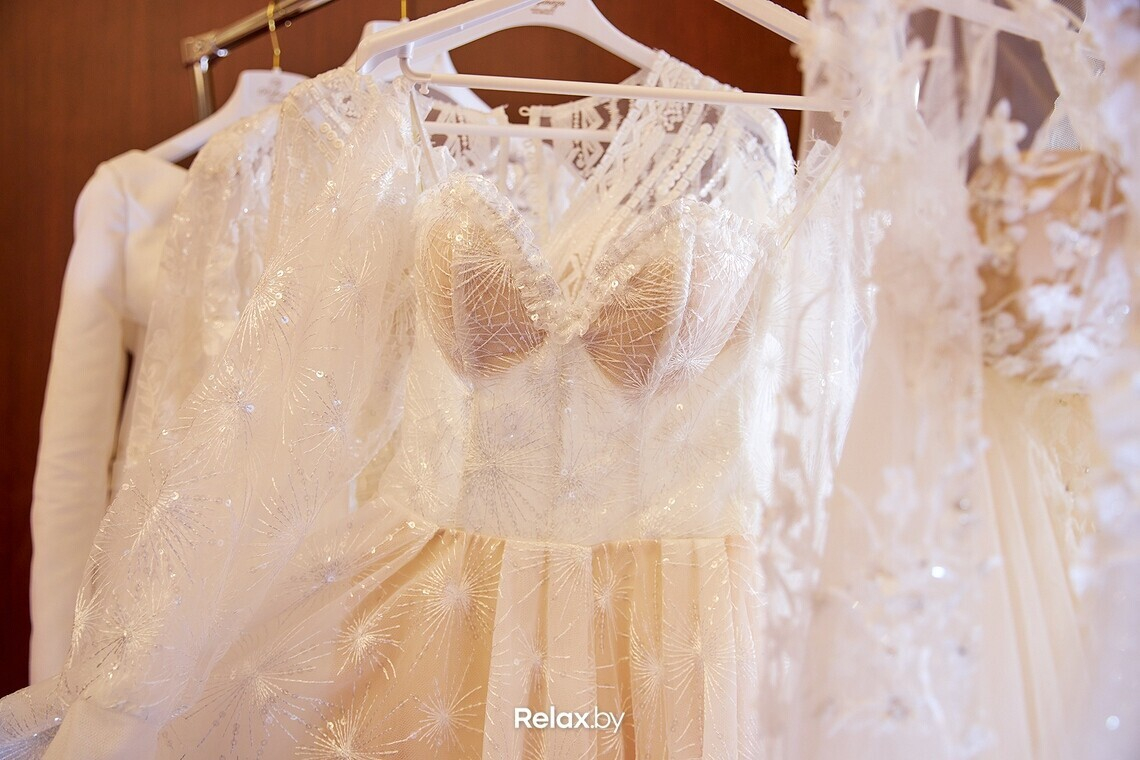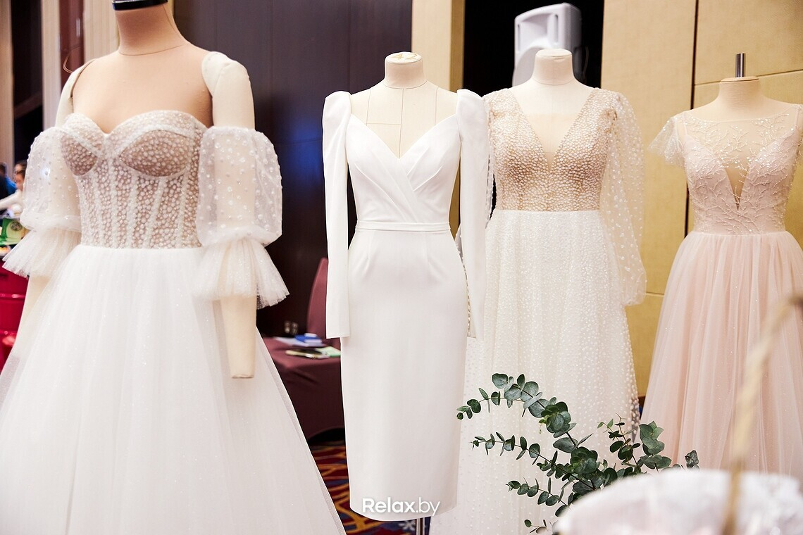 Relax.by cходил на выставку-интерактив «Моя идеальная свадьба» и готов рассказать, какие платья актуальны в этом году. Спойлер: на пике блеск, объемные рукава и миди.