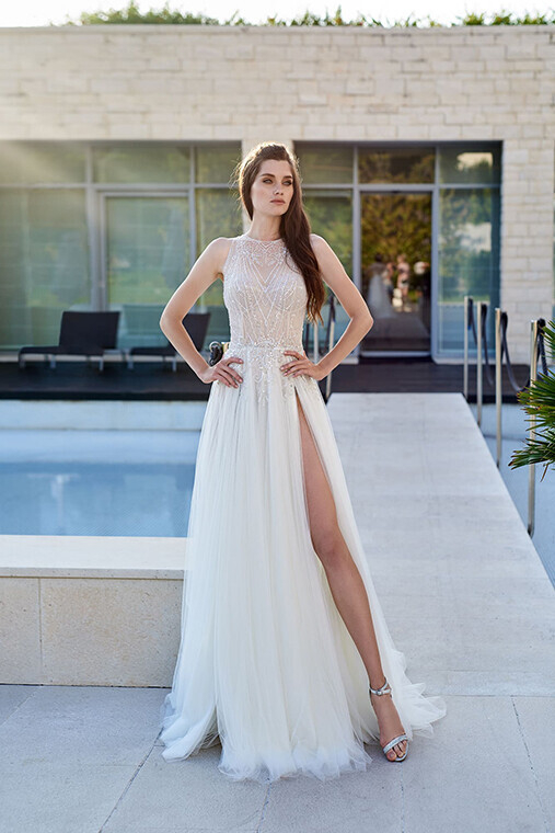 Бесспорно, одни из самых эффектных платьев, вдохновленные смелым появлением Анджелины Джоли на красной ковровой дорожке в 2012 году. Отлично подойдут для невест, влюбленных в эпатаж и смелые модные решения. Высокий разрез до середины бедра — особая изюминка, которую при желании можно «смягчить», скрыв струящейся тканью или блестящей вышивкой.