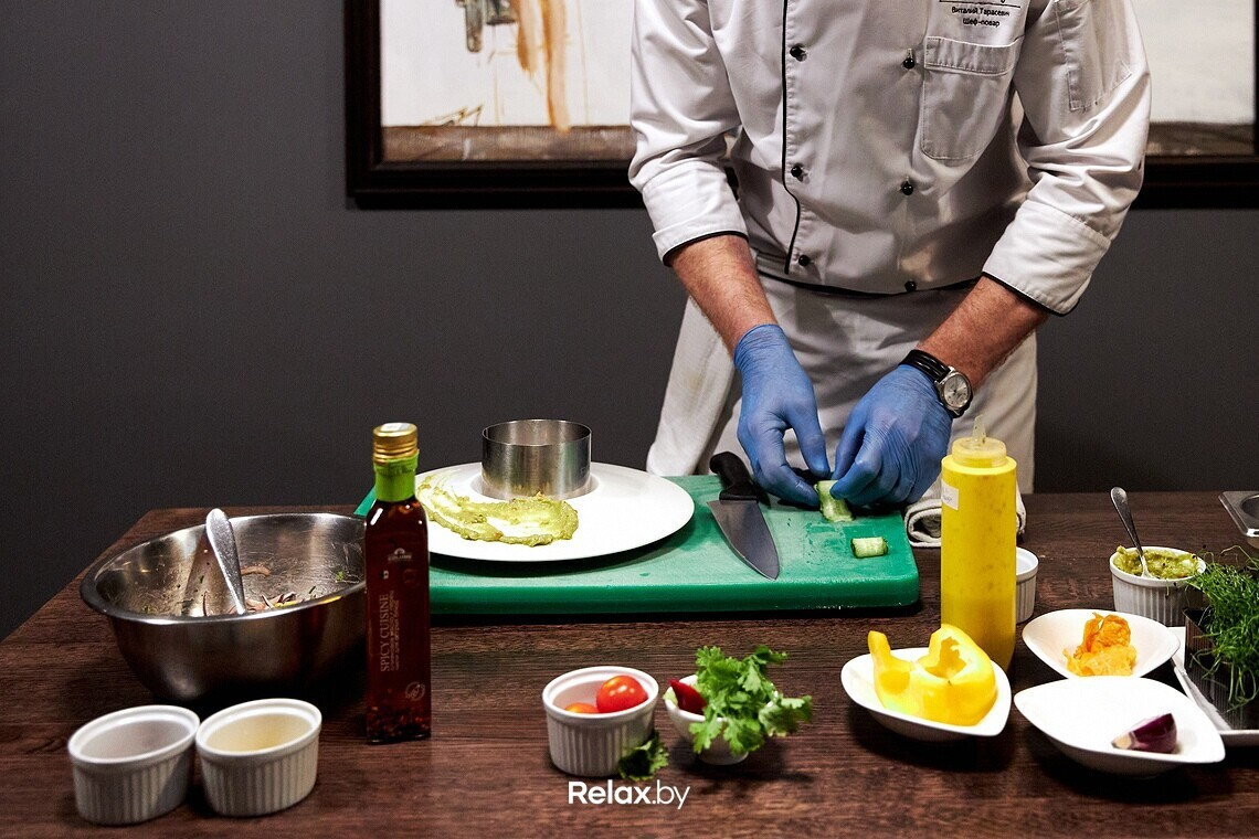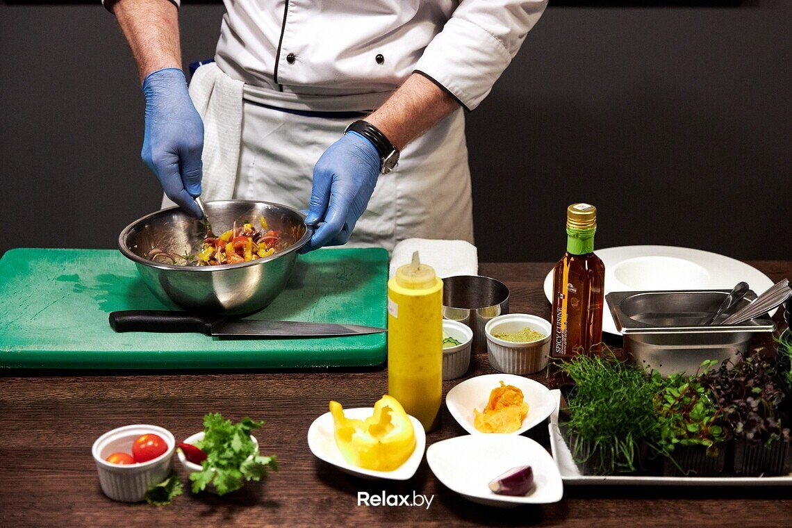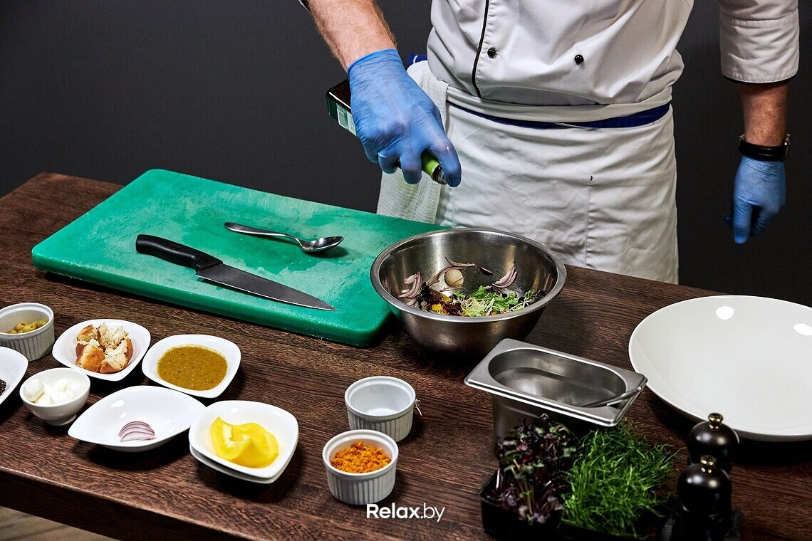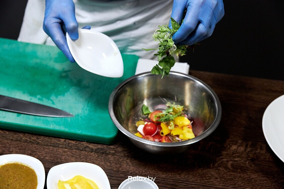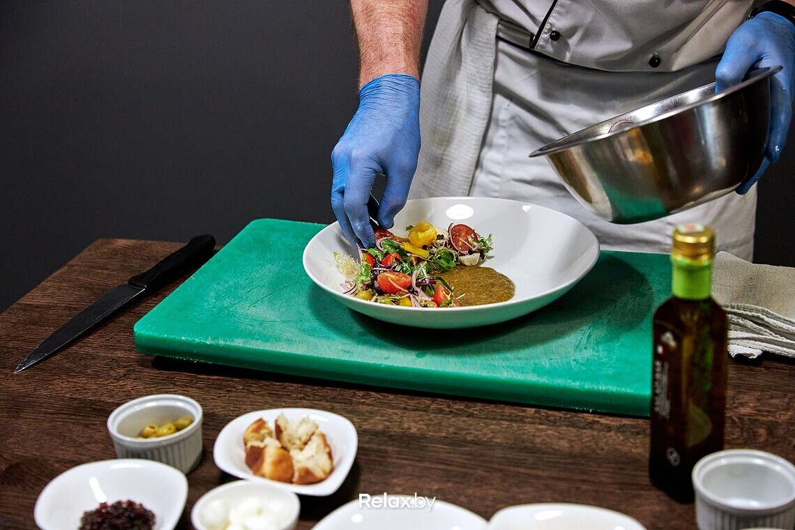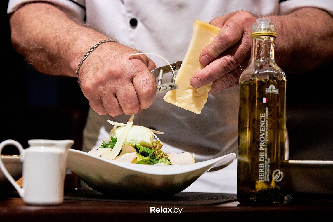 Первый салат готовим с шеф-поваром ресторана «Бруклин» Джузеппе Конти. Он родом из Италии, но за свою профессиональную карьеру объехал весь мир: от Нью-Йорка до Берлина. Конечно, готовит и французскую кухню, многие техники которой лежат в основе гастрономии.