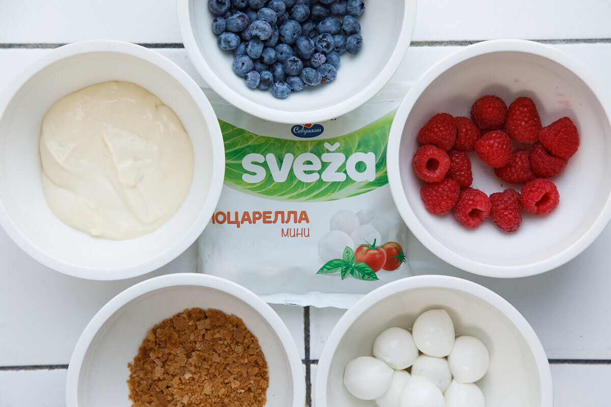 Легкий десерт с моцареллой, английским кремом и сезонными ягодами