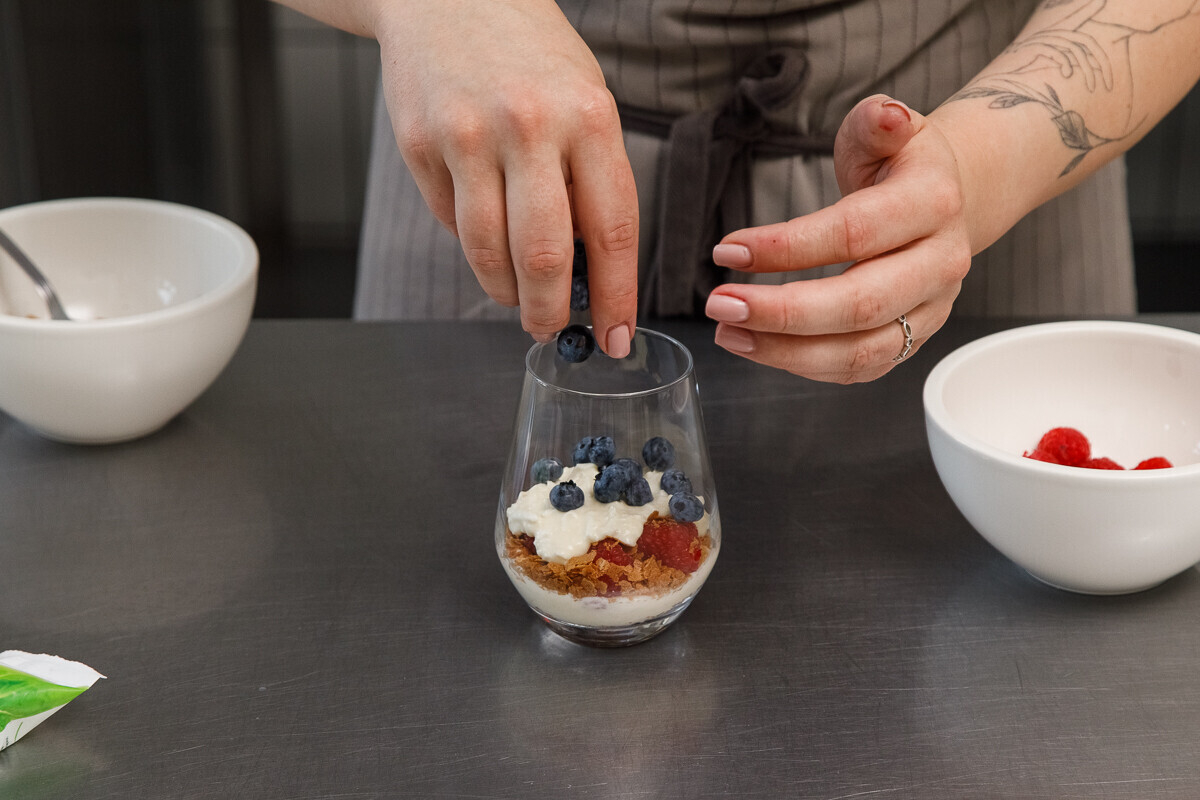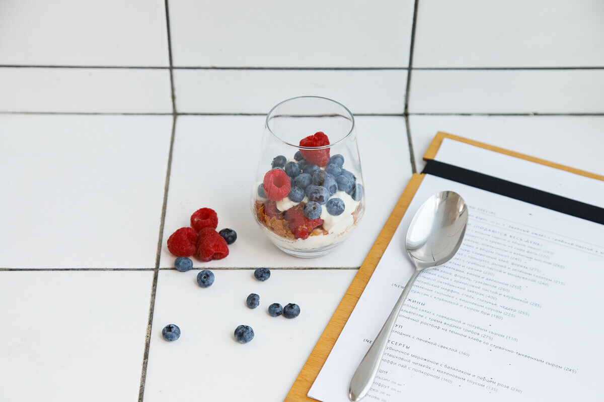 - сезонная ягода (малина, голубика) — 20-30 г;