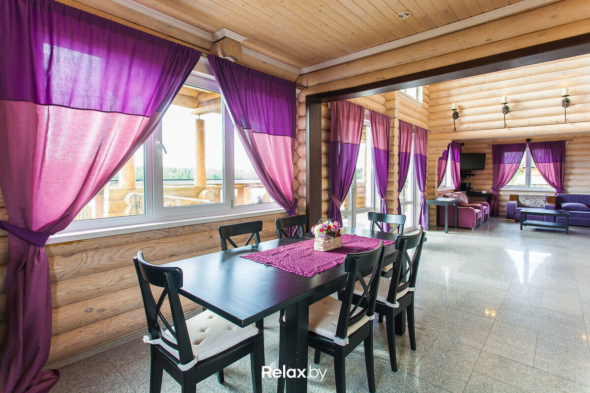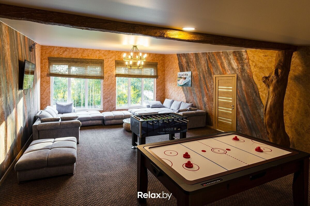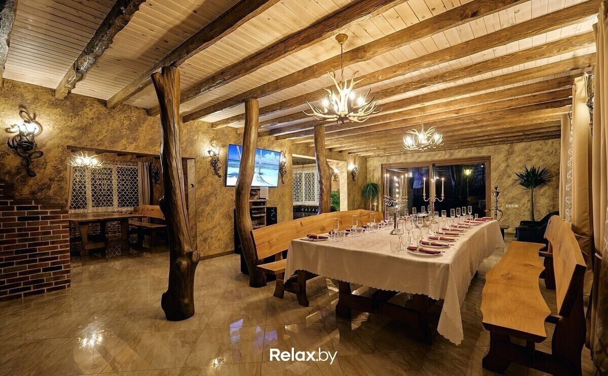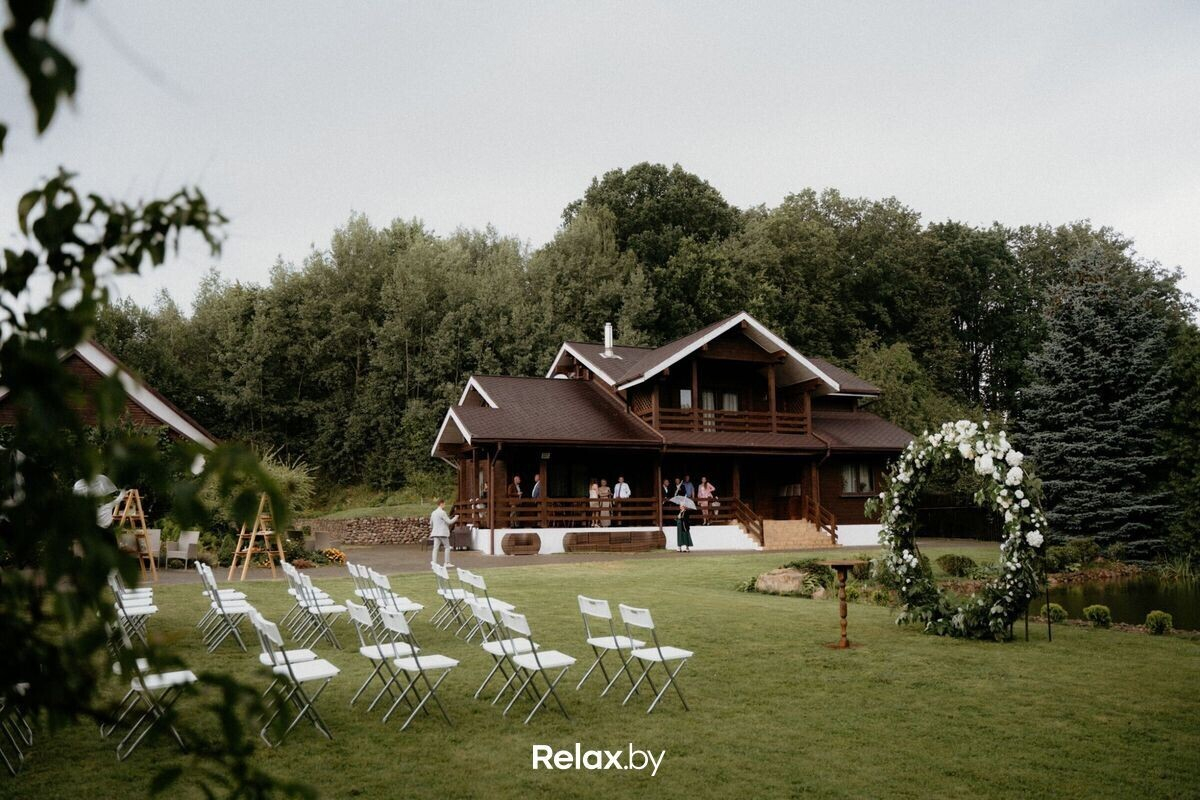 Почему сюда? Просторная усадьба, расположенная в Логойском районе в зоне заказника на большой территории в 1,5 га среди двух озер с водопадами и фонтанами. В общей сложности усадьба готова вместить до 240 гостей (!). Банкетный панорамный зал рассчитан на 120 гостей, шашлычный — на 15, а беседка — до 60. Для тех, кто желает остаться на ночлег, есть 40 спальных мест (на территории 2 дома: основной и баня). Притом у каждого дома своя территория. Эстеты отметят небанальный бассейн из валунов с водопадом и гейзером.