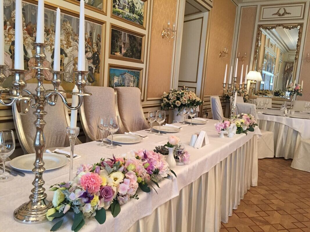 На выбор молодоженов два банкетных зала: основной зал (до 120 чел.) и зал «Модерн» (до 60 чел.). Также есть Каминный зал для небольших свадеб в кругу самых близких: здесь комфортно разместиться 30 человек. Арт-менеджер ресторан поможет с выбором ведущего, шоу-программы, флористов.