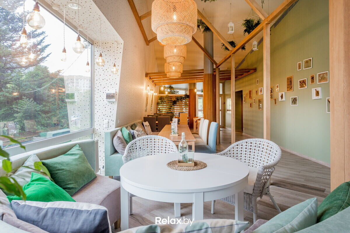 Почему сюда? Этот ресторан находится в Минске, но в нем появляется полное ощущение загородного отдыха. Из просторного, светлого зала с высокими потолками и панорамными окнами открывается прекрасный вид на парк. Благодаря расположению, на зеленой зоне здесь можно провести выездную регистрацию. Поверьте, зимой панорама вокруг не менее живописна, чем в теплый сезон!