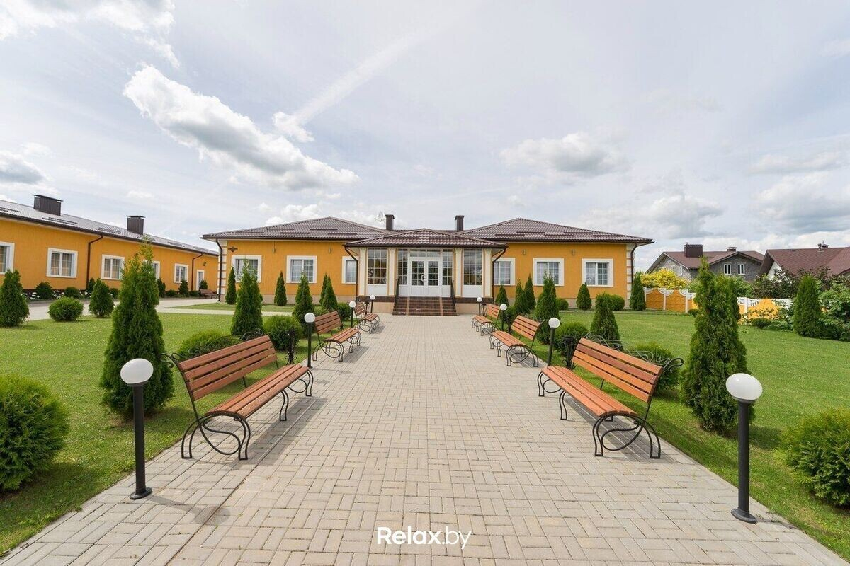 Хвойный воздух, красивая природа и комфортные условия в 55 км от Минска. Пожалуй, самое вместительное место, отлично подойдет для больших корпоративов. Комплекс новый, открылся летом этого года. Гости могут расположиться в уютных номерах класса «Люкс», а банкет пройдет в ресторане с блюдами европейской и белорусской кухни. В комплексе организуют шоу-программу на банкет, возможна организация досуга детей при отдыхе взрослых (цена от 70 руб.).