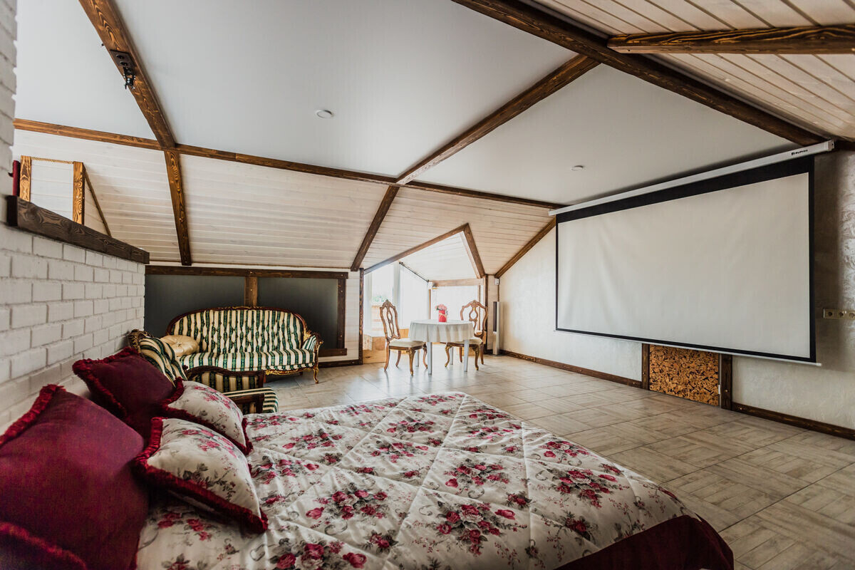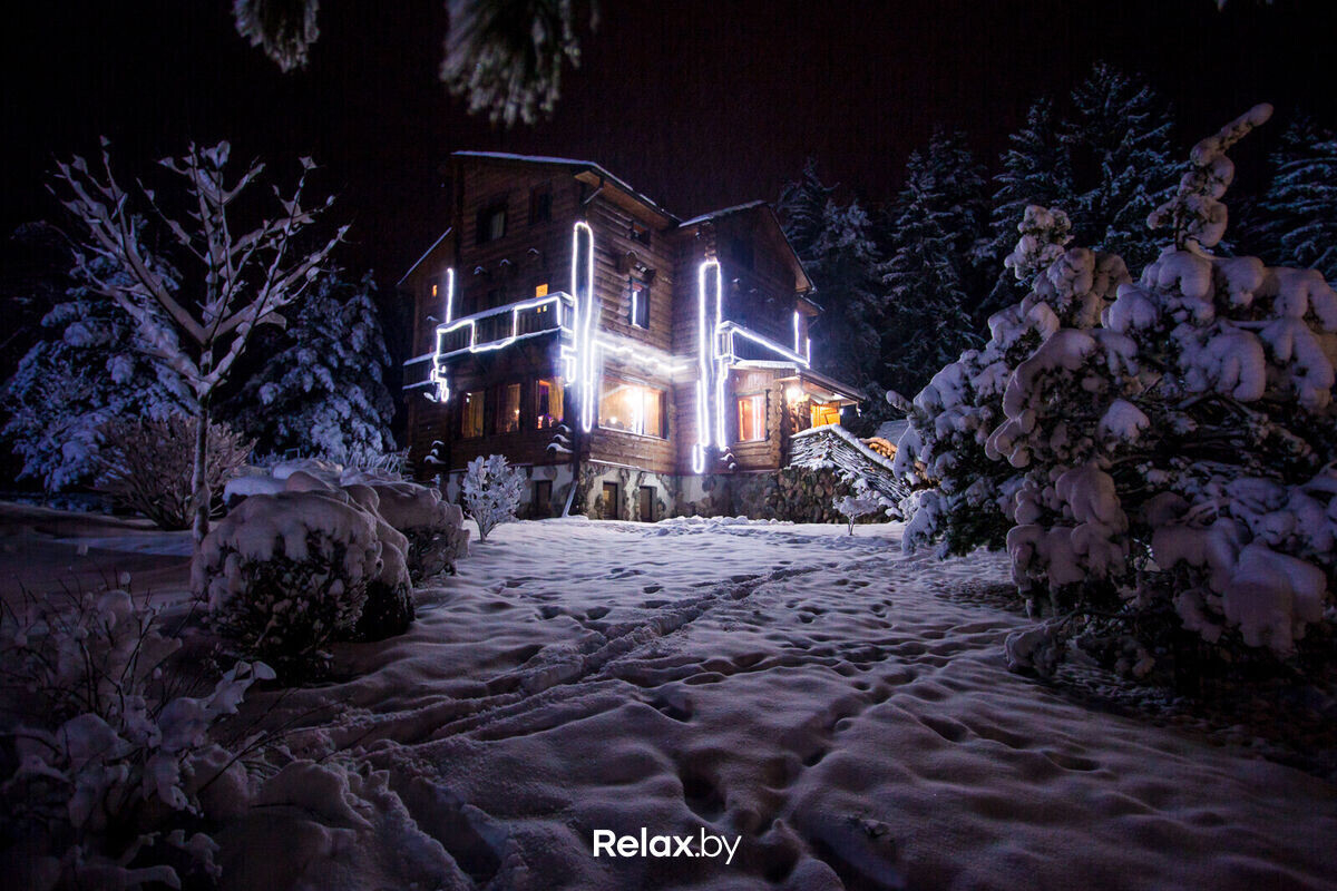 Акцент на европейском сервисе — основа работы коттеджа. Усадьба располагает номерным фордом до 94 спальных мест, что делает его идеальным местом для проведения масштабного новогоднего корпоратива. Аппартаменты отличаются высоким уровнем комфорта. В зимнее время здесь можно покататься на лыжах и аттракционах и даже на коньках. Кстати, усадьба находится в считанных метрах от «Силичей», поэтому из окон номеров бонус для гостей: виднеется склон горы спортивного комплекса. На новогодний банкет есть возможность организовать трансфер. Стоимость оговаривается индивидуально, исходя из количества гостей.