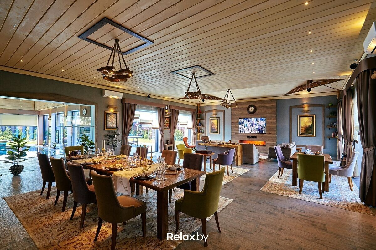 Хвойный воздух, красивая природа и комфортные условия в 55 км от Минска. Пожалуй, самое вместительное место, отлично подойдет для больших корпоративов. Комплекс новый, открылся летом этого года. Гости могут расположиться в уютных номерах класса «Люкс», а банкет пройдет в ресторане с блюдами европейской и белорусской кухни. В комплексе организуют шоу-программу на банкет, возможна организация досуга детей при отдыхе взрослых (цена от 70 руб.).